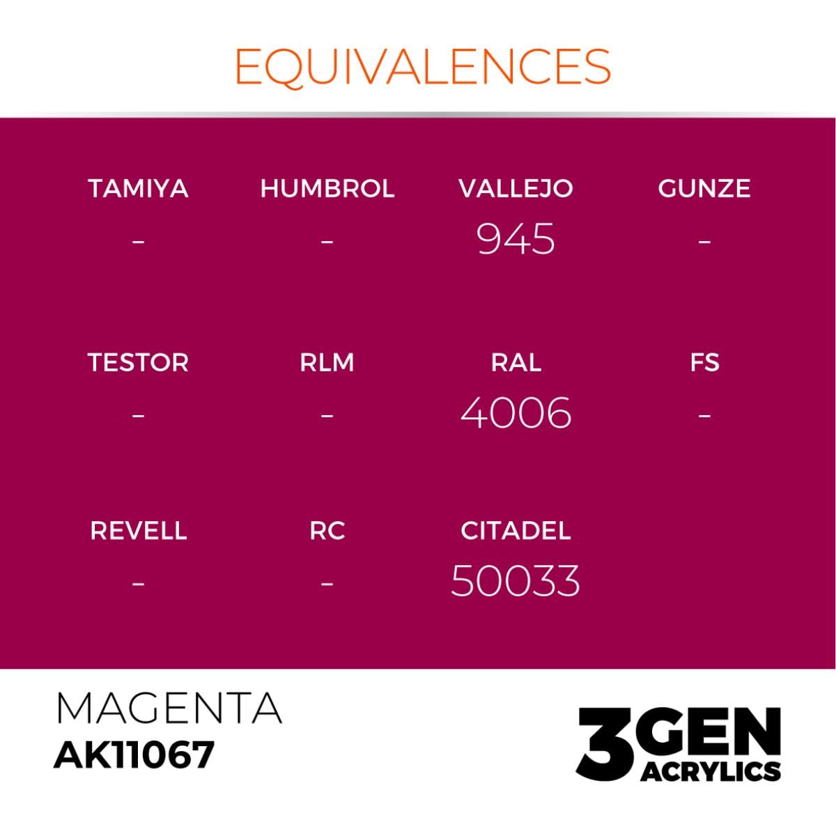 AK 11067 17 ml. Magenta, 3GEN Akrilik Model Boyası.