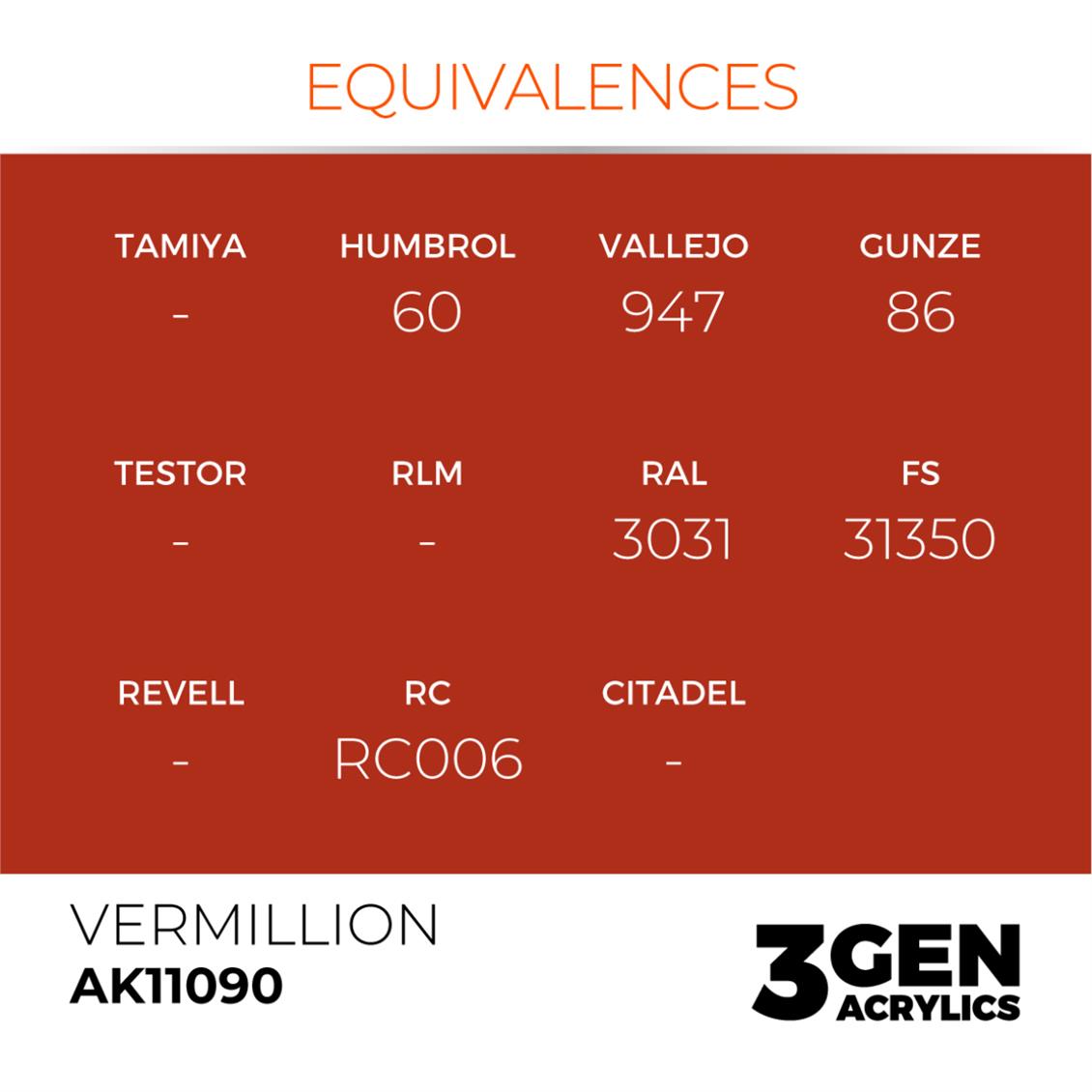 AK 11090 17 ml. Vermillion, 3GEN Akrilik Model Boyası, modelcilerin en çok sevdiği boyalardan biridir. Bu boyanın vermillion renginde olması, modelcilere çeşitli renkli modellere sahip olabilme fırsatını sunar. Ayrıca, akrilik malzemesi ile birlikte uzun süreli kullanıma uygundur.