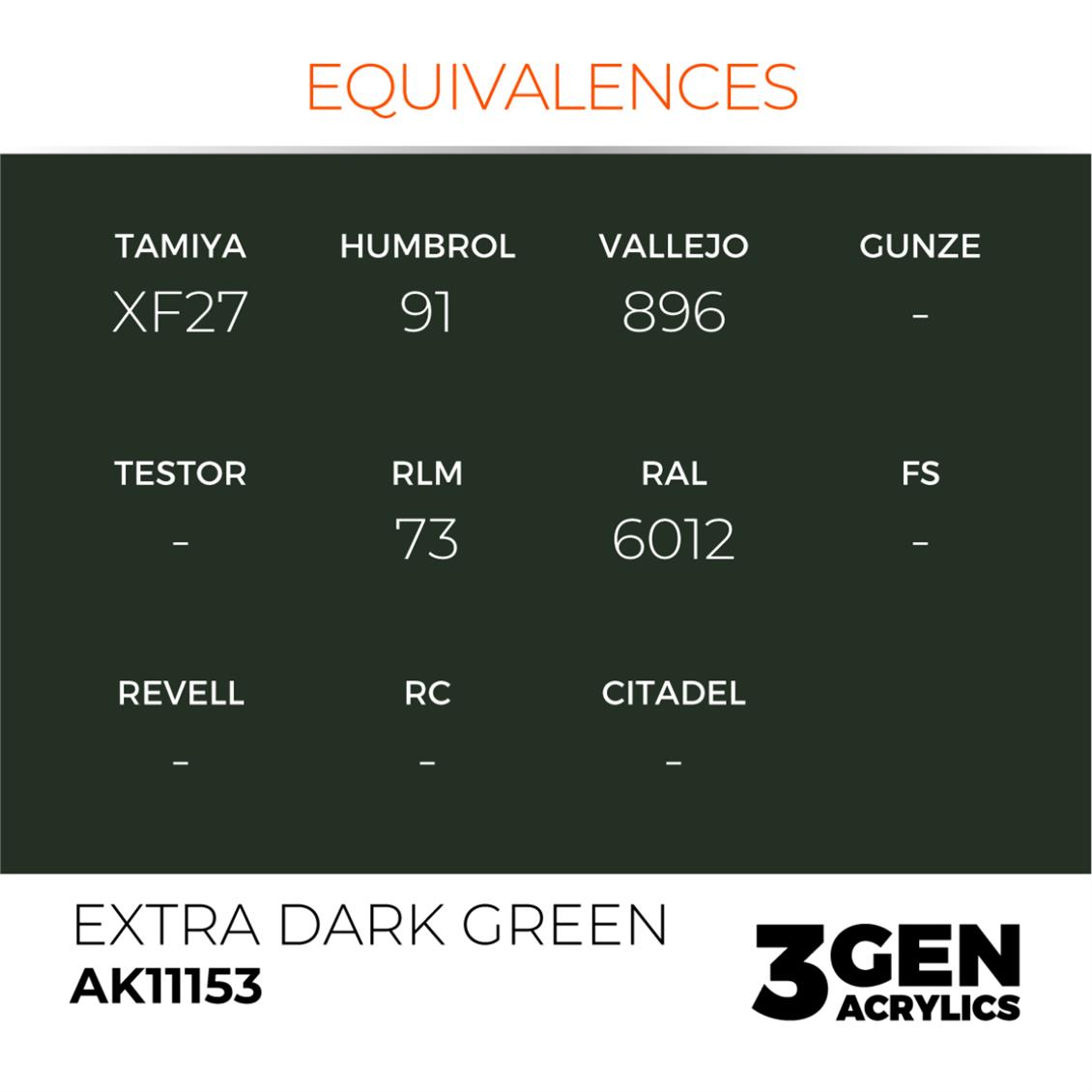 AK 11153 Extra Dark Green, 3Gen Akrilik Model Boyası ideal hobi amaçlı kullanım alanlarından biridir. Bu ürün, modelcilere ayrıntılı ve gerçekçik boyama deneyimi sunar. Ayrıca, bu ürünün akrilik malzemelerinin yüksek kalitesi, boyama sürecini kolaylaştırır ve sonuçta daha iyi bir görünüm sağlar.