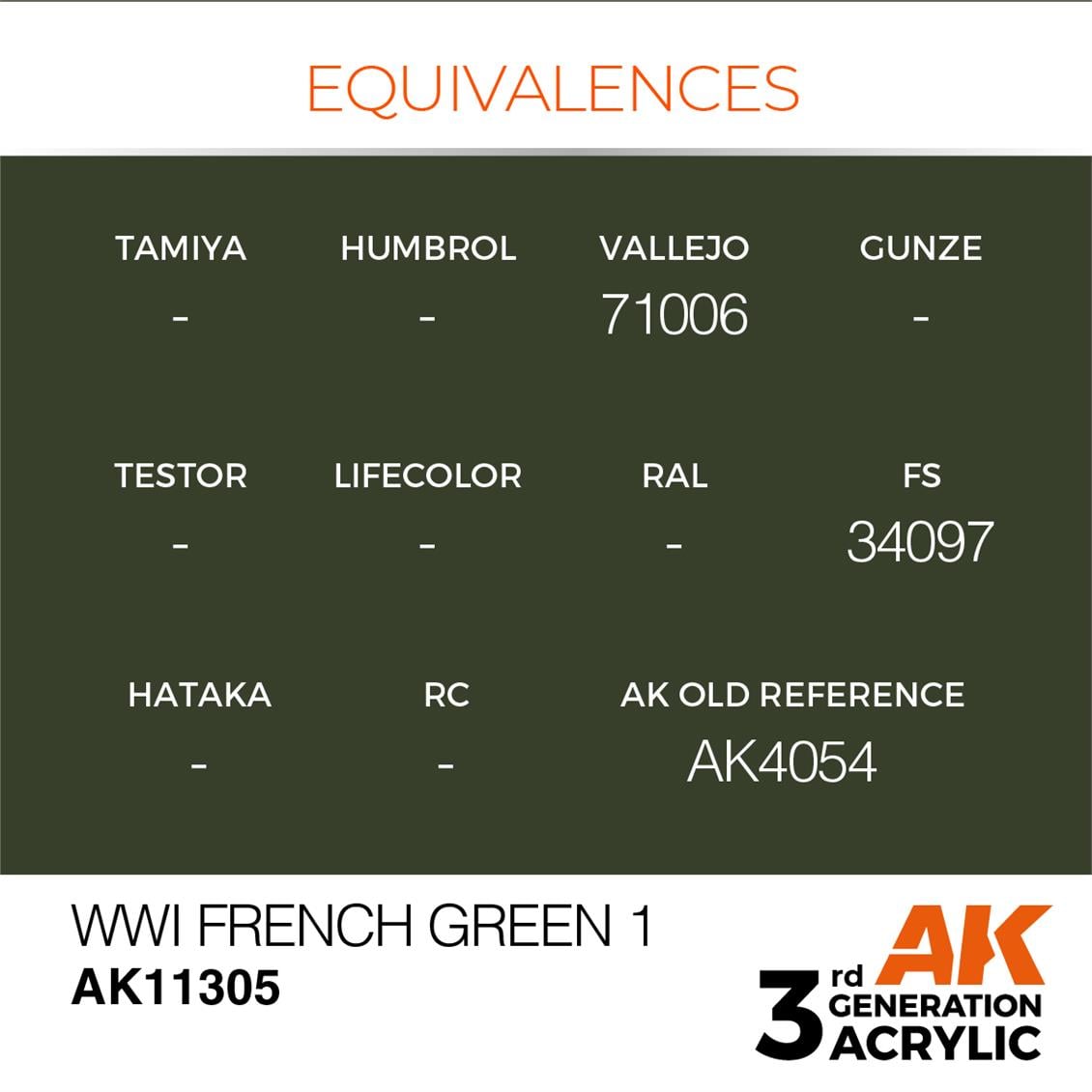 WWI French Green 1, AFV Serisi 3GEN Akrilik Model Boyası, modelcilerin WWI dönemine ait askerî araçlarını ya da diğer askeri ürünlerini detaylı bir şekilde boyama olanağı sunar. Bu boyalar, yüksek sürme oranı ve akrilik malzemeden üretilmesi nedeniyle uzun süreli kullanım imkanı sağlar. Hobi amaçlı kullanım alanları: modelcilik, diorama oluşturma, tarihi araç modellikleri.