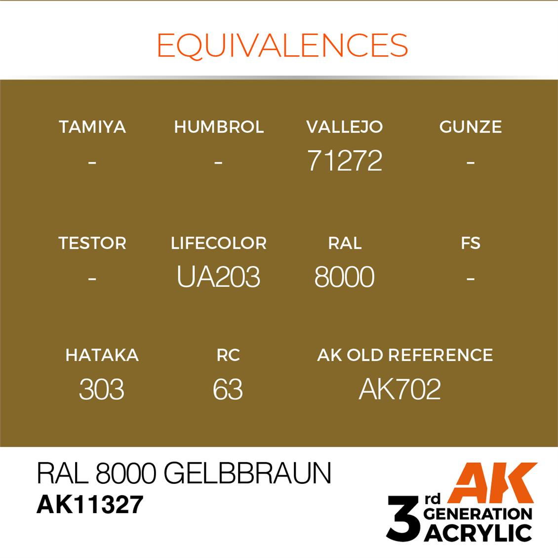 AK 11327 17 ml. RAL 8000 Gelbbraun, AFV Serisi 3GEN Akrilik Model Boyası.