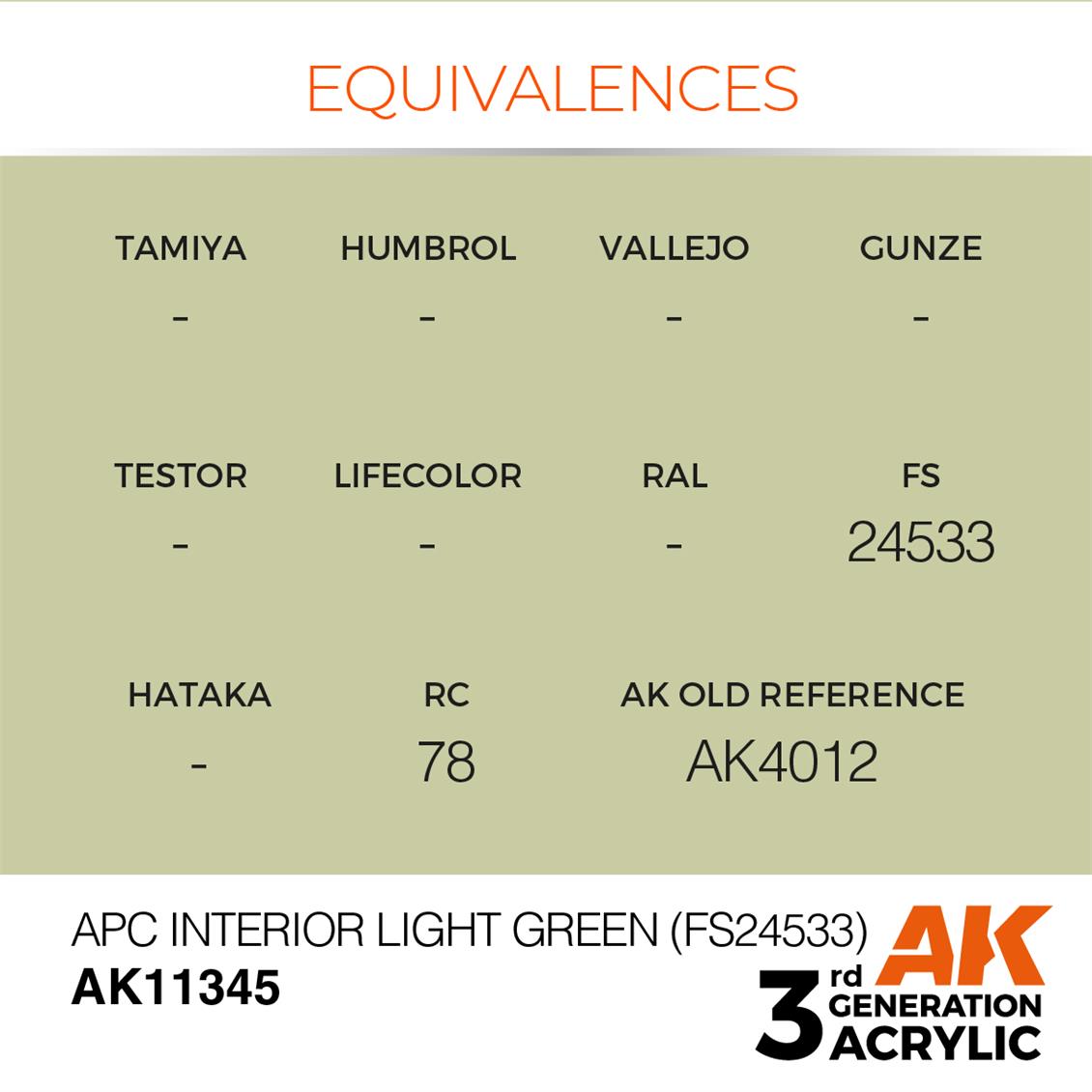 AK 11345 17 ml. APC Interior Light Green (FS24533), AFV Serisi 3GEN Akrilik Model Boyası.