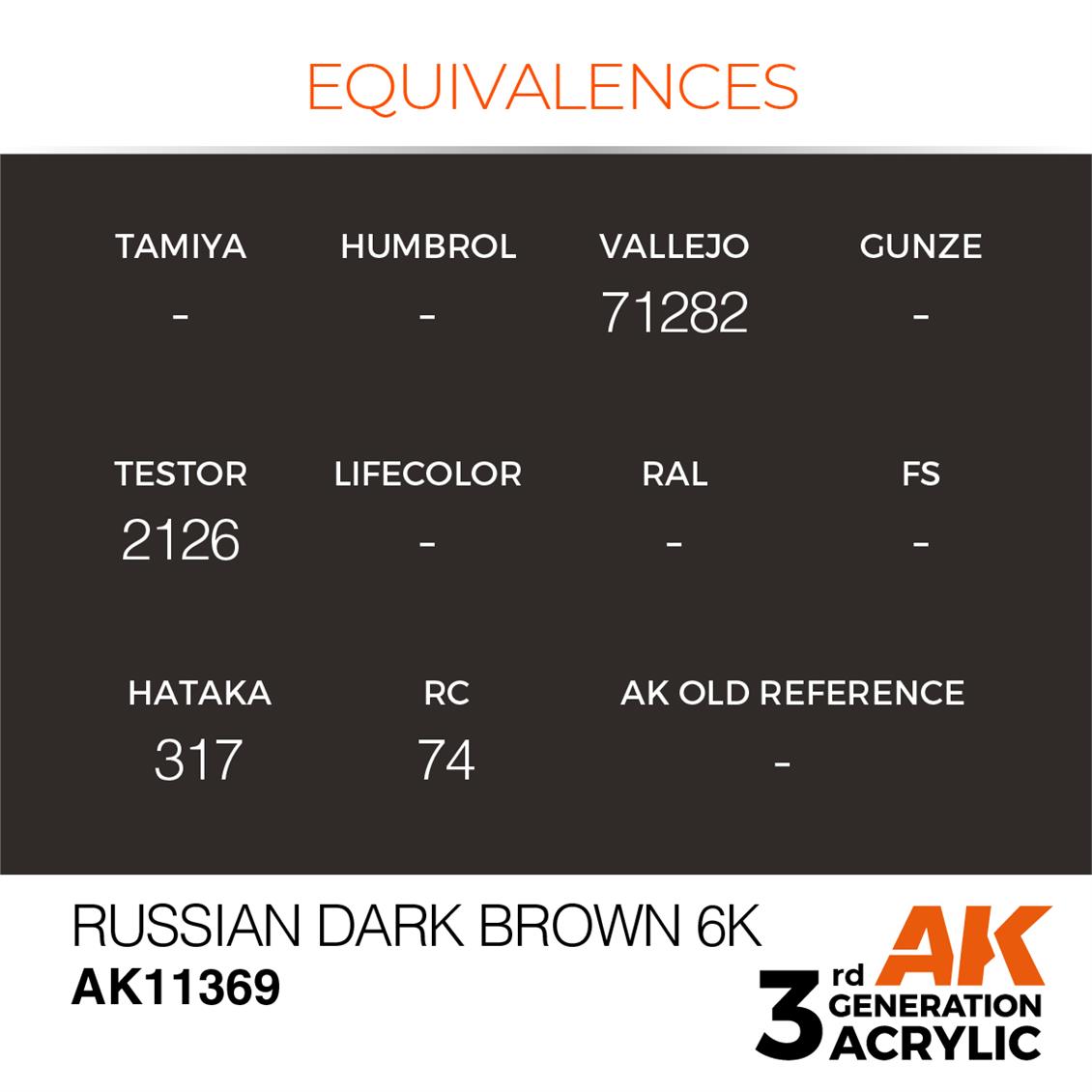 AK 11369 17 ml. Russian Dark Brown 6K, AFV Serisi 3GEN Akrilik Model Boyası ürününü kullanarak, siz de profesyonel modelcilik deneyimi yaşayabilirsiniz! Bu akrilik boyalar, modellere gerçekçi bir görünüm kazandırır ve hobbyistlerin en büyük problemlerinden biri olan renk kaynaşmasını engeller. Ürün, AFV Serisi 3GEN ürün ailesine ait olduğundan, AFV tank modellere uygun olarak tasarlanmıştır. Modelciler için ideal bir seçim oluşturuyor.