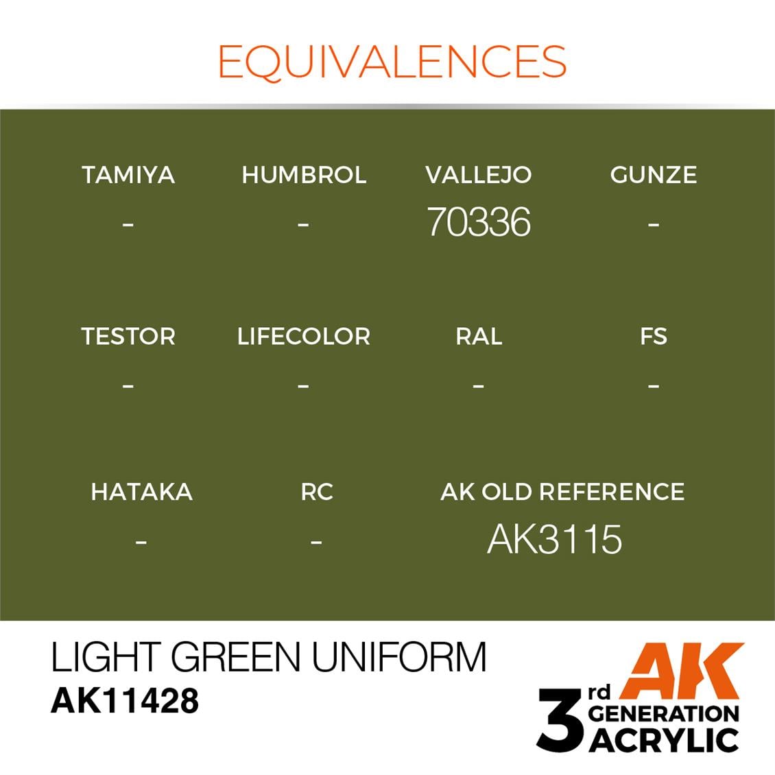 AK 11428 17 ml. Light Green Uniform, Figür Serisi 3GEN Akrilik Model Boyası