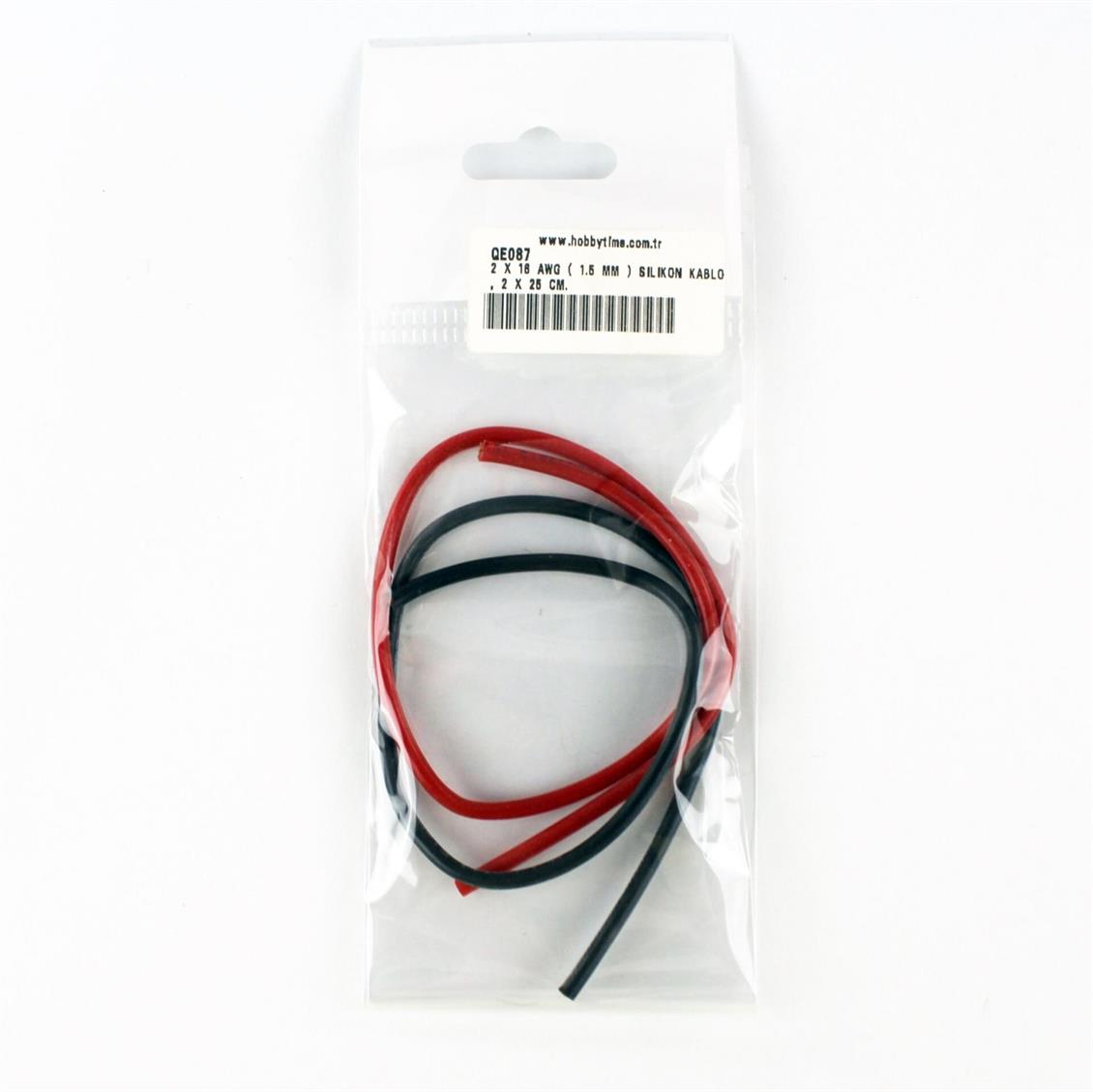 2 x 16 AWG (1,5 mm) Silikonkabel, 2 x 25 cm.