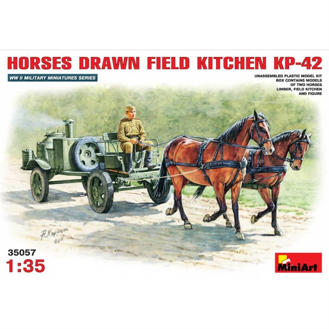 Es wird von Miniart hergestellt und ist eines der Miniart -Kits mit Qualität und detaillierter plastischer Injektion, die viele Modellisten mit einem Pferdewagen und einem Lebensmittelfahrzeug gemäß der 2. Weltkriegszeit entworfen haben.