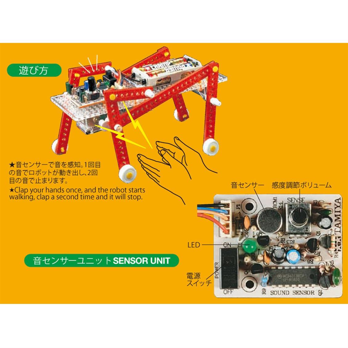 Tamiya Bildungsserie, Sound -empfindliches Walking. Durch Übernahme des Befehls und des Wanderbefehls Arbeiten. Mit 2 aa Stiftbatterie Arbeiten. Es entsteht aus der Box als zerlegt. 2 Beine, 4 Beine oder 6 Es kann mit Fuß gebaut werden. Der Pädagoge, der den Griff Ihrer Kinder verbessern wird Es ist ein Roboter -Kit.