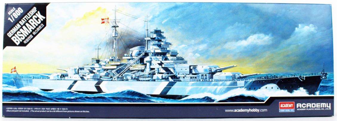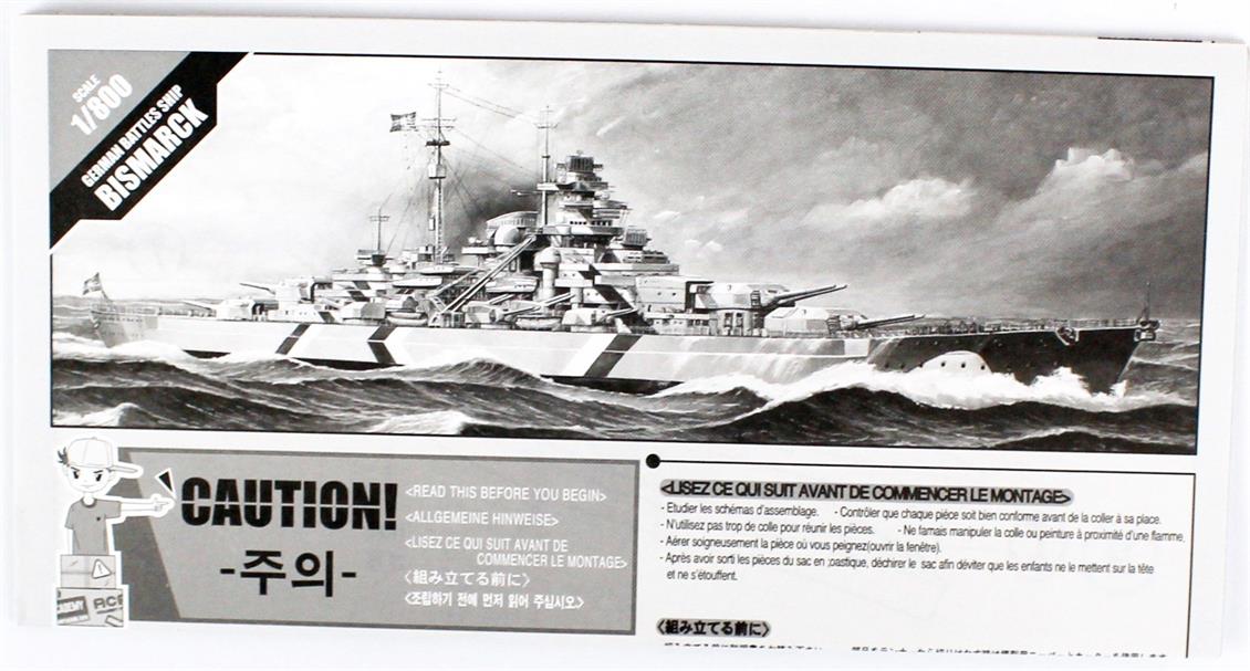Akademie 14218 1/800 Bismarck Kriegsschiff zerlegtes Plastikmodell