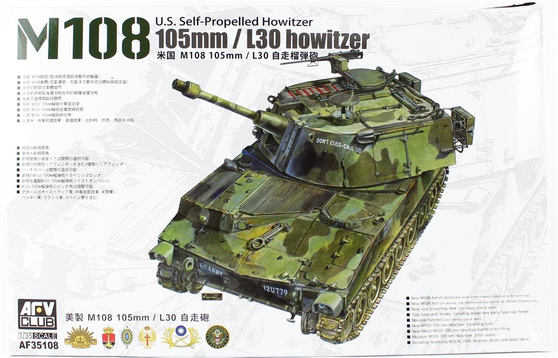 AFV Club AF35108 1/35 M108 105 mm Motor Tank Demonte Plastikmodell