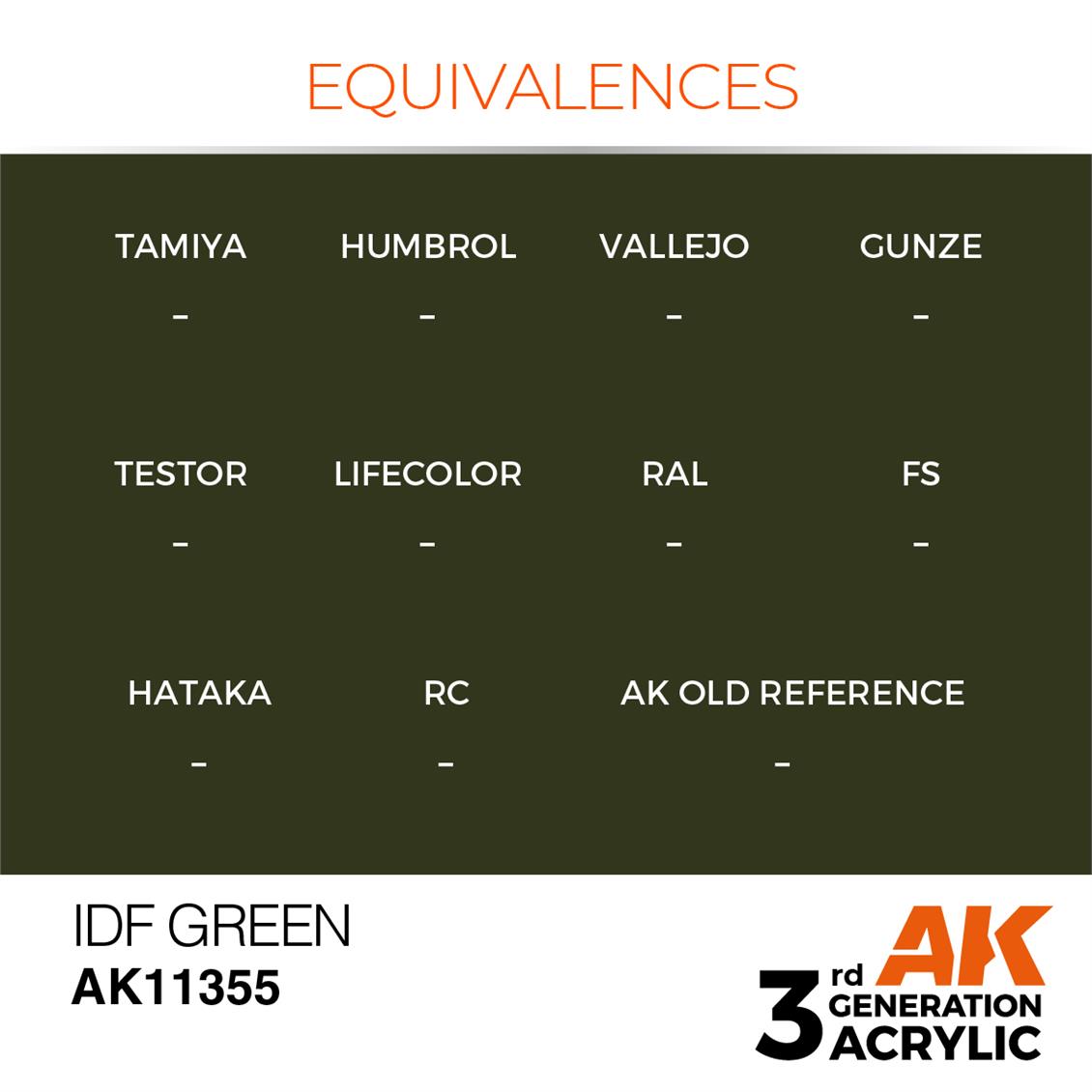 AK 11355 17 ml. IDF Green, Acryl-Modellfarbe der AFV-Serie 3GEN