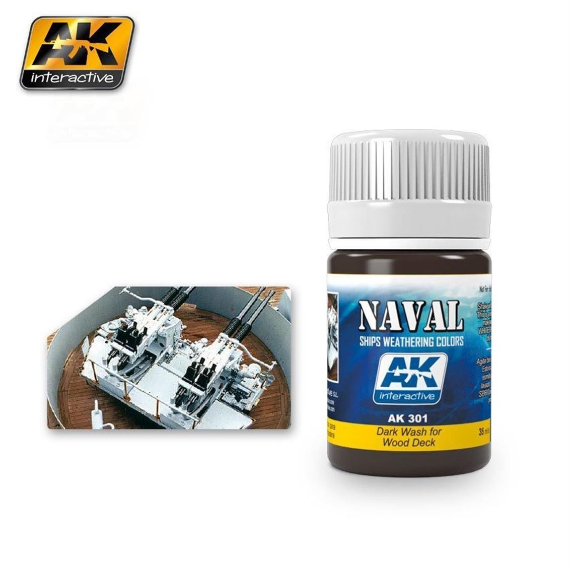 Emailfarbe für die Modellierung. Mit diesem Produkt problemlos realistische dunkle Holzrilleneffekte erzeugen. Dieses Schmelzprodukt schafft realistische Effekte in Ihren Modellen. Leicht zu bewerben. Eine sehr realistische Farbe. Die Wash -Serie unterscheidet sich stark von Linieneffekten. Sie sind zu sehr verwässert und enthüllen die besten Details perfekt für Fahrzeuge. Tragen Sie die Farbe auf Details, Nieten und Abdeckungen mit einem dünnen Pinsel auf. Nachdem die Wash -Serie getrocknet hat, reinigen Sie den Überschuss mit einem sauberen Pinsel mit AK011 White Spirit. Es wurde speziell entwickelt, um die Details von Holzbeschichtungen zu enthüllen, die für viele Kriegsschiffe spezifisch sind. Es kann auch für andere Holzobjekte verwendet werden.