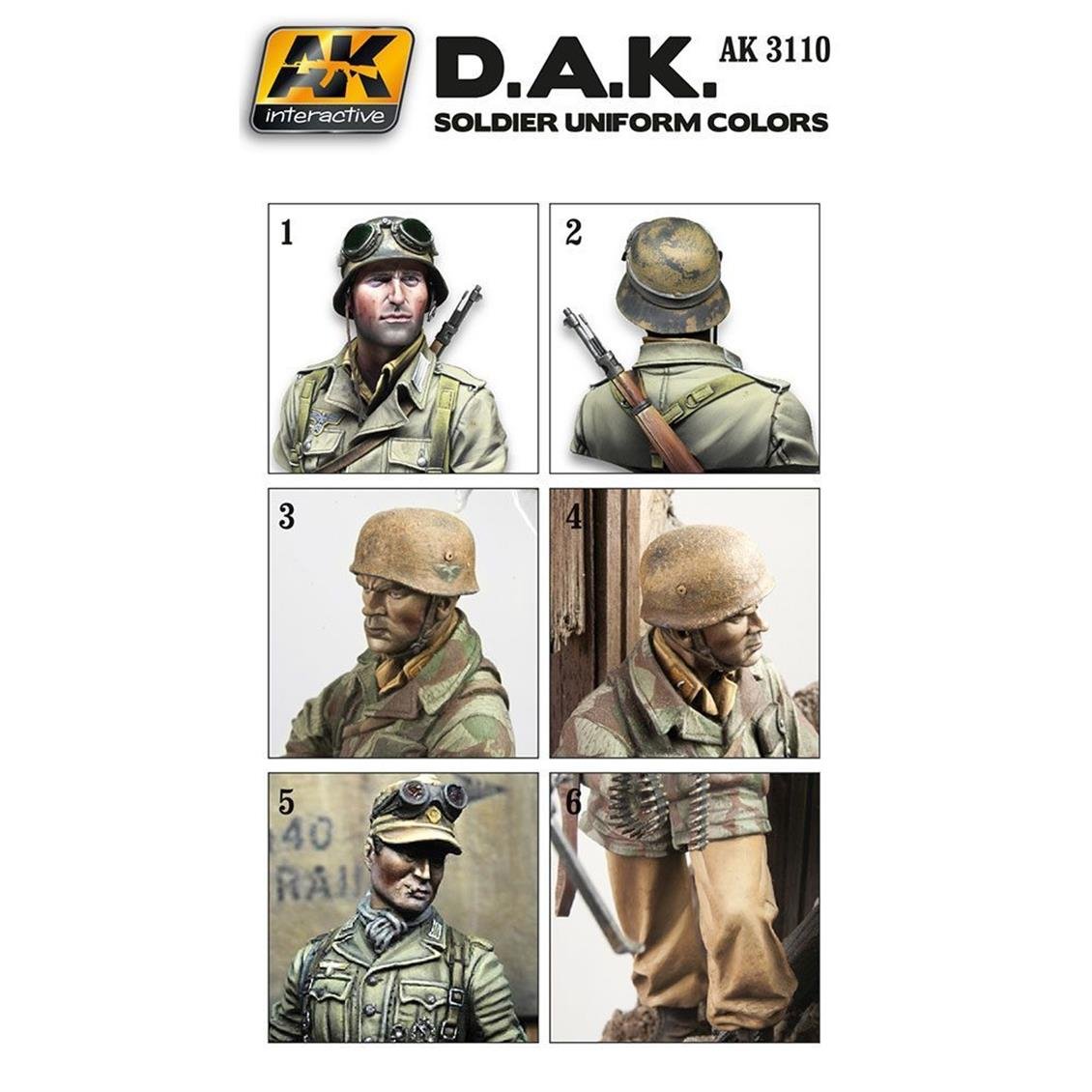 AK Interactive 3110 6x17ml Deutsche grünlich graue Uniformfarben Modell Malerei Set
