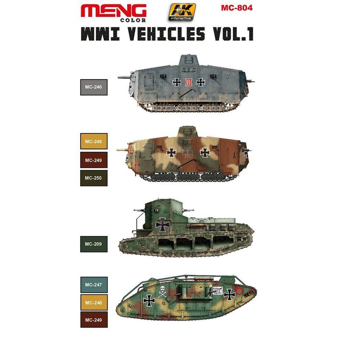 AK Interactive 804 WWI -Fahrzeuge Tarnfarben Modell Malerei Set 6x17ml Vol.1