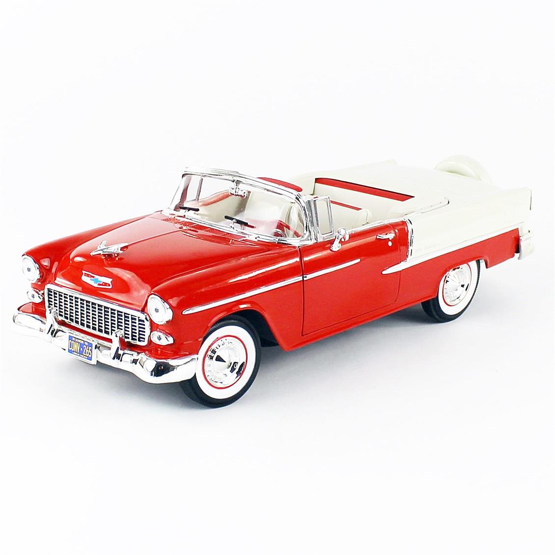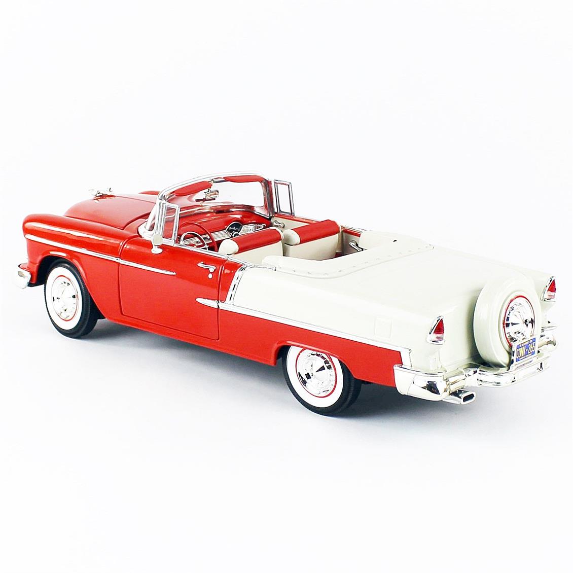 Autoworld AMM1265 1/18 1955 Chevy Belair Cabrio, Rot Weiß, bereit, Metallauto -Modell auszustellen