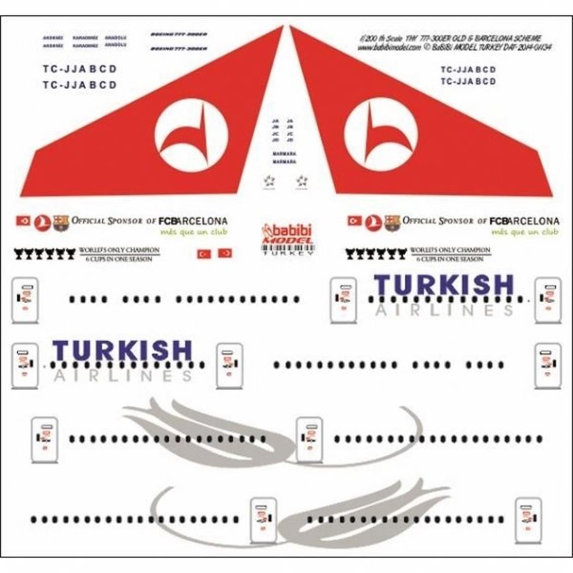 Babibi DAT01134 1/200 Skala, Thy, Boeing 777-300er, Old & Barcelona, Dekal Deklaration