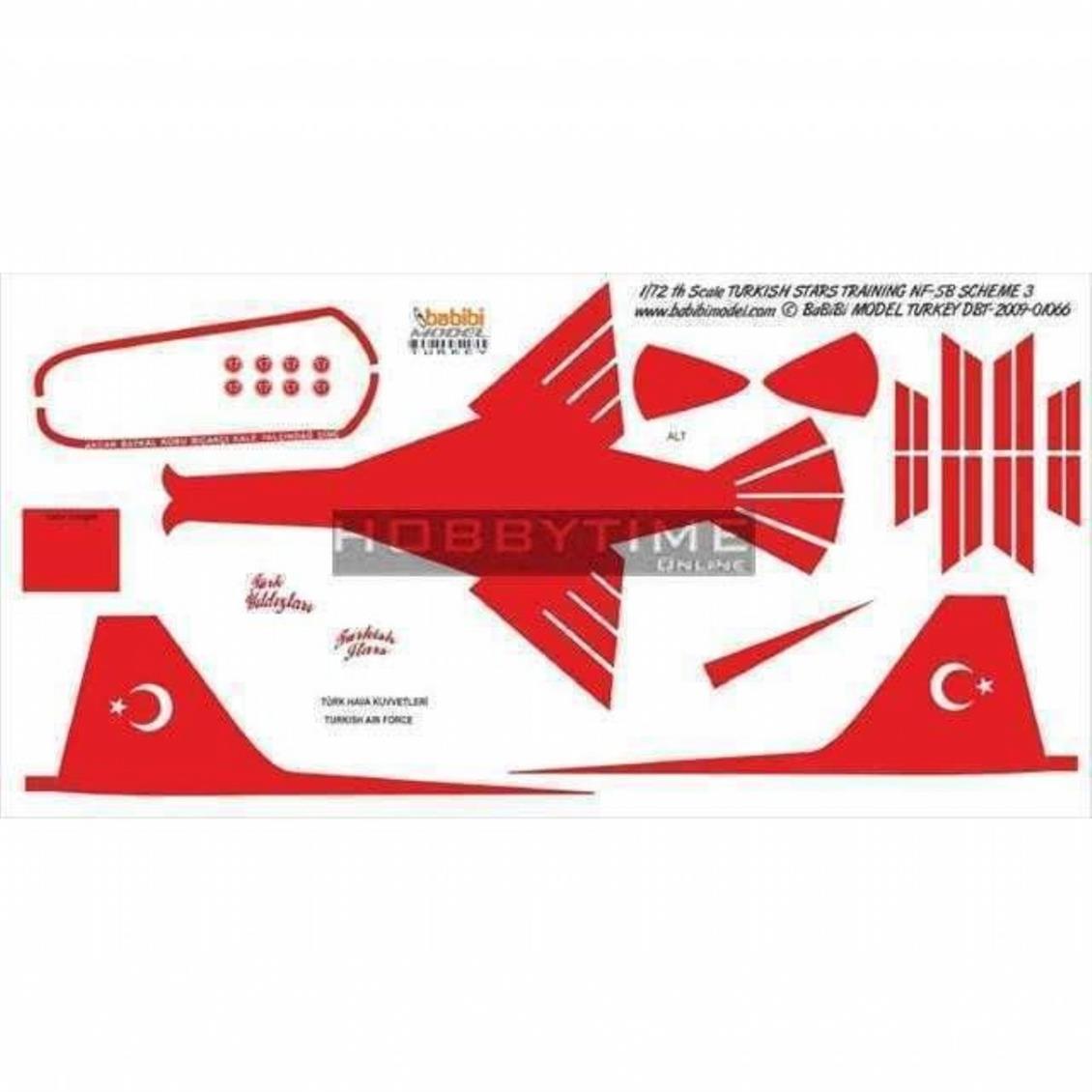 Für Ihre 1/72-Skala F-5B- und NF-5B-Modelle, türkische Sterne Aufkleber. Mit diesem Aufkleber -Set können Sie Ihr Modell wie die Flugzeuge türkischer Sterne entwerfen, die das akrobatische Team der Welt der Welt sind.