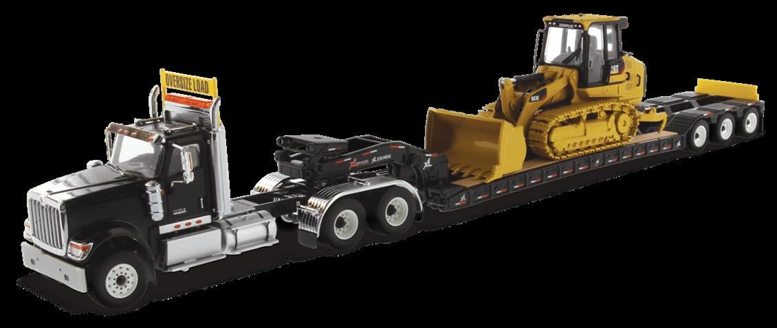1 StückInternationaler HX520 Tandem Tandem und XL 120 Trailer und Cat 963K Dzer