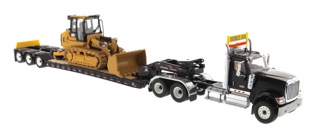 Diecast Masters 85599 1/50 Internationales HX520 Tandem Tandem Tandem und XL 120 Trailer und Cat 963K Dozer, bereit für die Ausstellung Metall Work Machine 3 Modellset