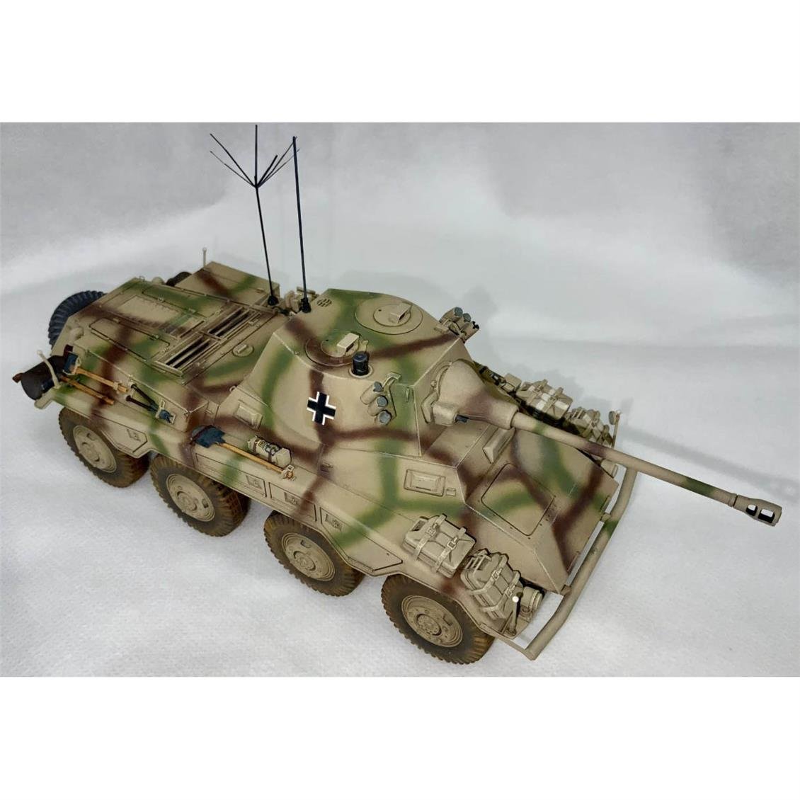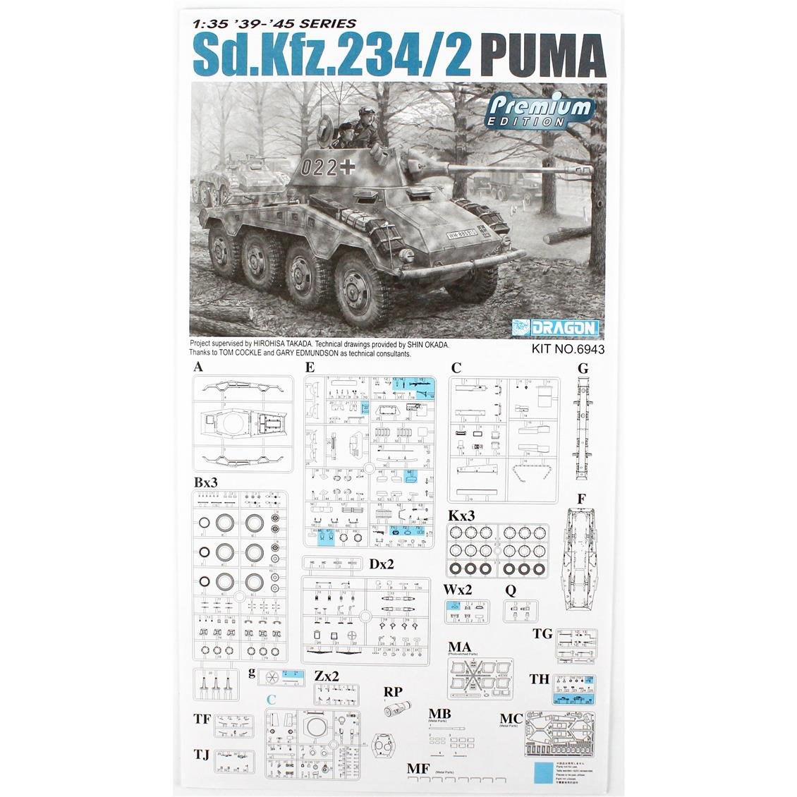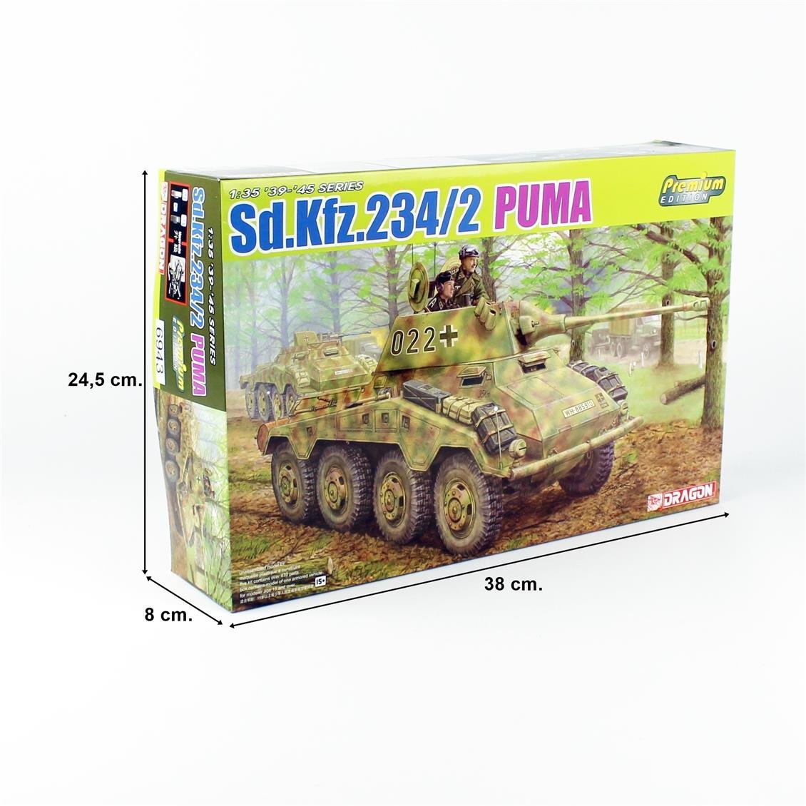 Dragon startet ein aufregendes Vorsprung von 1/35 Premium Edition eines 8x8 -Fahrzeugs aus der deutschen SD.KFZ.234 -Serie. Dieses Kit beschreibt wahrscheinlich die berühmteste Variante von 234/2, die häufig Puma genannt wird. Die erste Fahrzeuggruppe wurde im Dezember 1943 geliefert und im September 1944 wurden insgesamt 101 Fahrzeuge hergestellt, als die Produktion endete. Sd.kfz.234 / 2 (# 6256) hatte eine außergewöhnliche Menge an Details. Dragon versuchte ständig, die Messlatte zu erhöhen, daher war es Zeit, als Premium Edition -Kit zu aktualisieren. Zu den Verbesserungen gehören 3 Sandwich -Straßenräder. Alle Räder können auf verschiedene Winkel eingestellt werden. Detaillierter stammt aus einer Auswahl von fotogeschützten Metallteilen. Taret ist korrekt geformt und enthält realistische Schweißnähte. Dieses Puma, ein Kunststoffwerk der Kunst, ist mit Katzenzauber und muss eine wichtige Ergänzung für eine seriöse Modellsammlung im Zweiten Weltkrieg sein. Empfehlungen