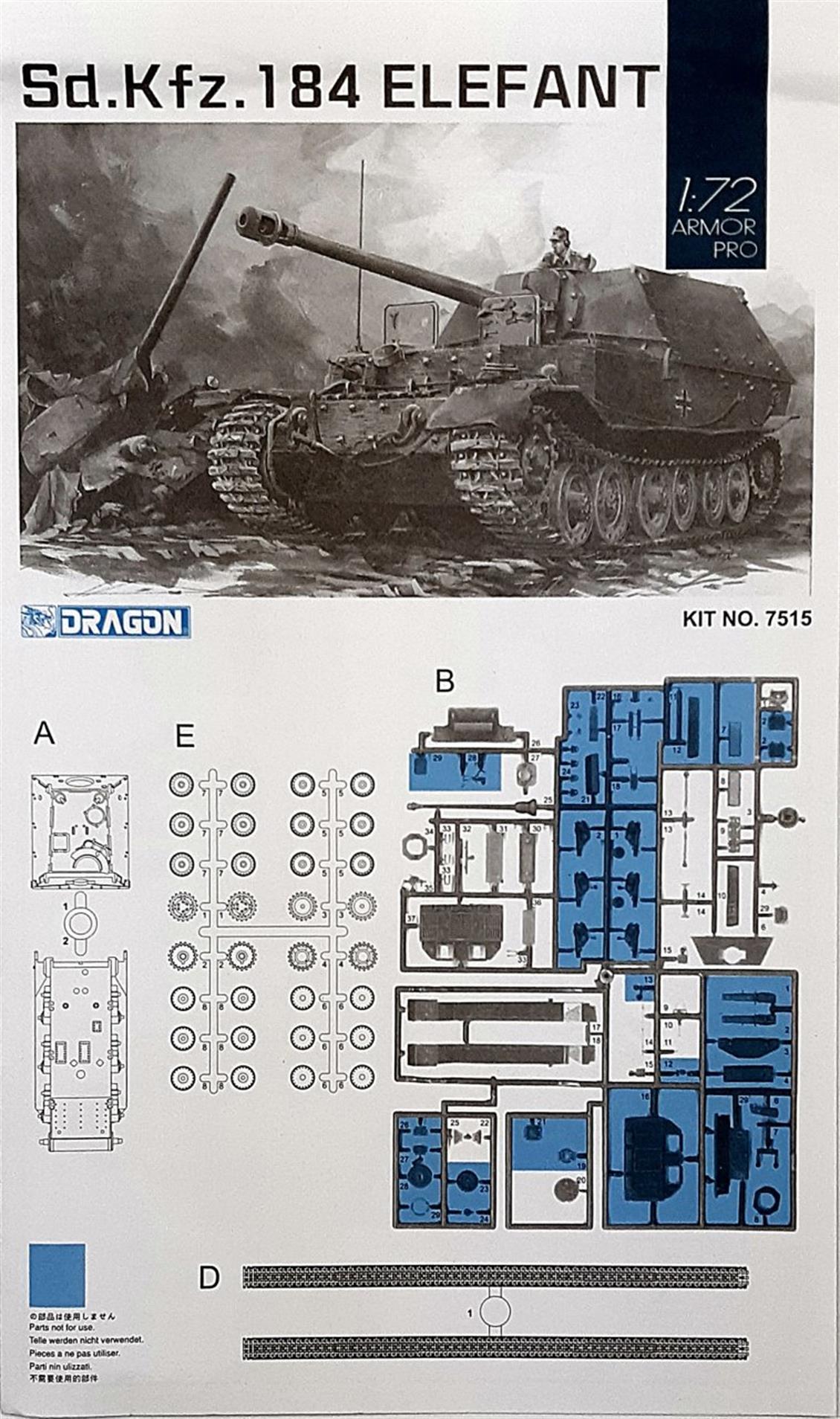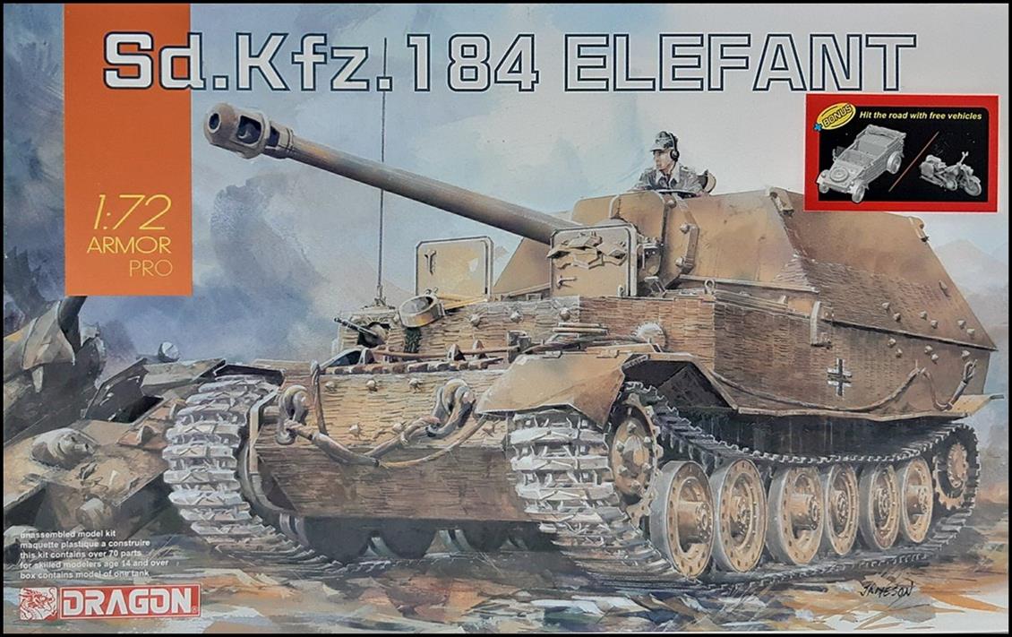 Dragon 7515 1/72 SD.KFZ.184 Elefant (mit Kubelwagen & Bike) Tank Demonte Plastikmodell