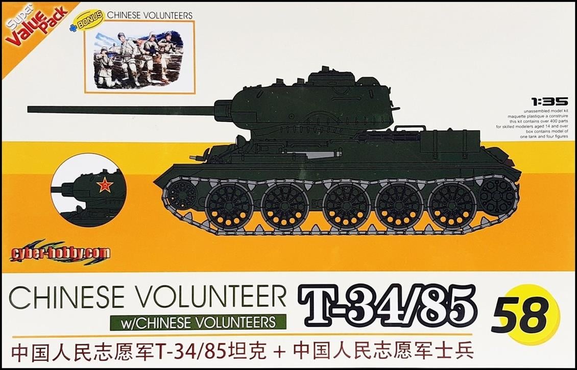 CyberHobby 9158 1/35 T 34/85 Tank- und Mujaheddin -Figuren zerlegtes Plastikmodellsatz abgebaut