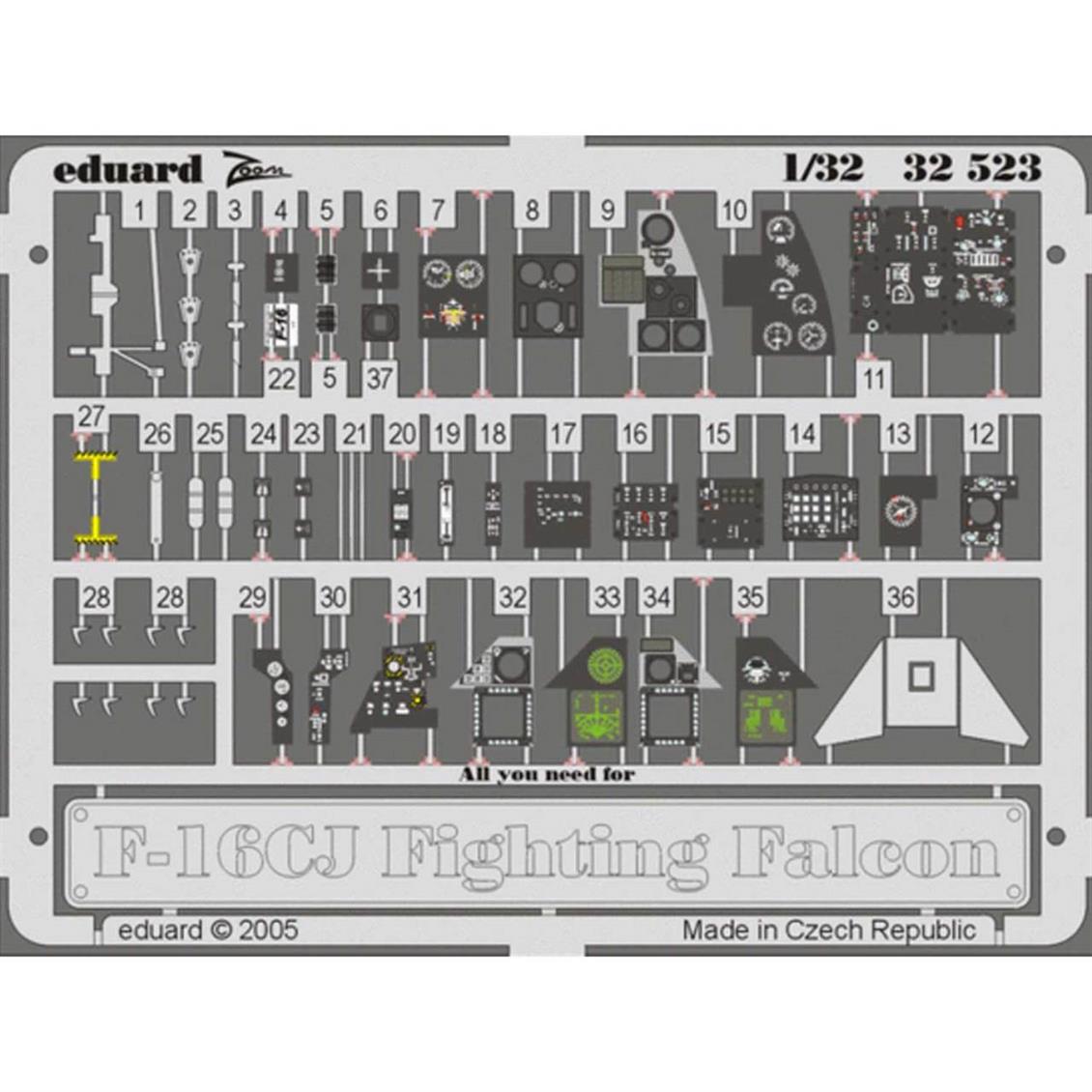 Eduard 32523 1/32 Skala, F-16CJ Reign Innenraum für TAM-Modell (ED32523)