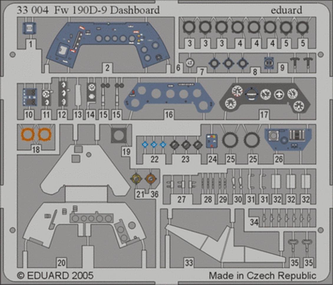 Eduard 33004 1/32 Skala, FW 190D-9 Dashboard für Hasegawa (ED33004)