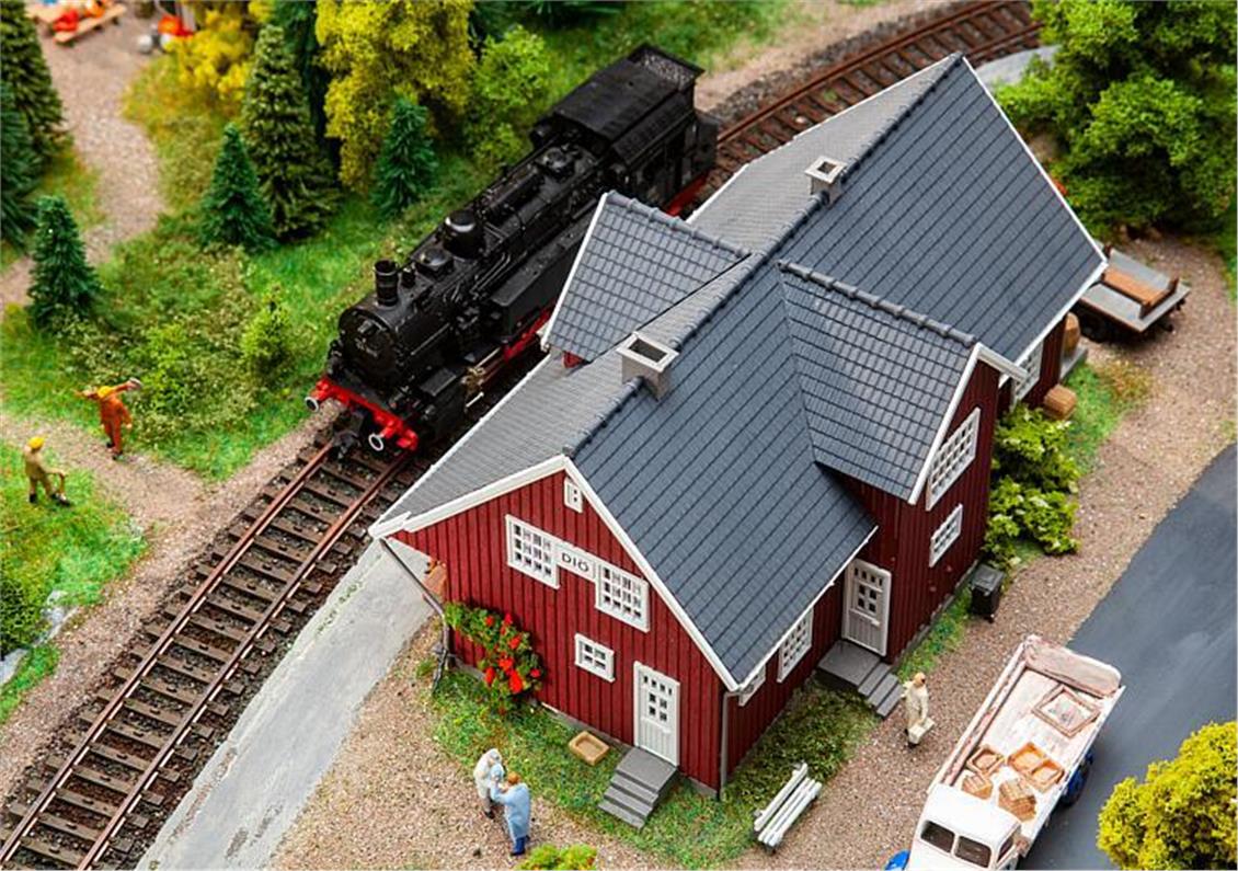 Es ist ein einzelnes Bahnhofsgebäude im skandinavischen Holzhausstil im beliebten schwedischen Rot mit dunkelgrauem Dach und weißen Käfigfenstern. Die langen Kanten des ländlichen Bahnhofs haben ein drittes dreieckiges Dach und das mit Buchstaben dekorierte Dachfenster. Kite Concrete -Basis -Teller beinhaltet.Das Zug Diorama ist wie das Erreichen des extremsten Punktes des Hobby. Sie benötigen verschiedene Häuser und Modelle, wenn Sie Ihre eigene Traumwelt schaffen. Je größer Ihre Traumwelt, desto schöner werden Sie tun. Wenn Sie die 1930er Jahre auf einer Skala von 1/87 erinnern möchten. Die Auswahl des schwedischen Bahnhofsmodells wäre die richtige Entscheidung. Das feinste Detail wird zum Modell verarbeitet.