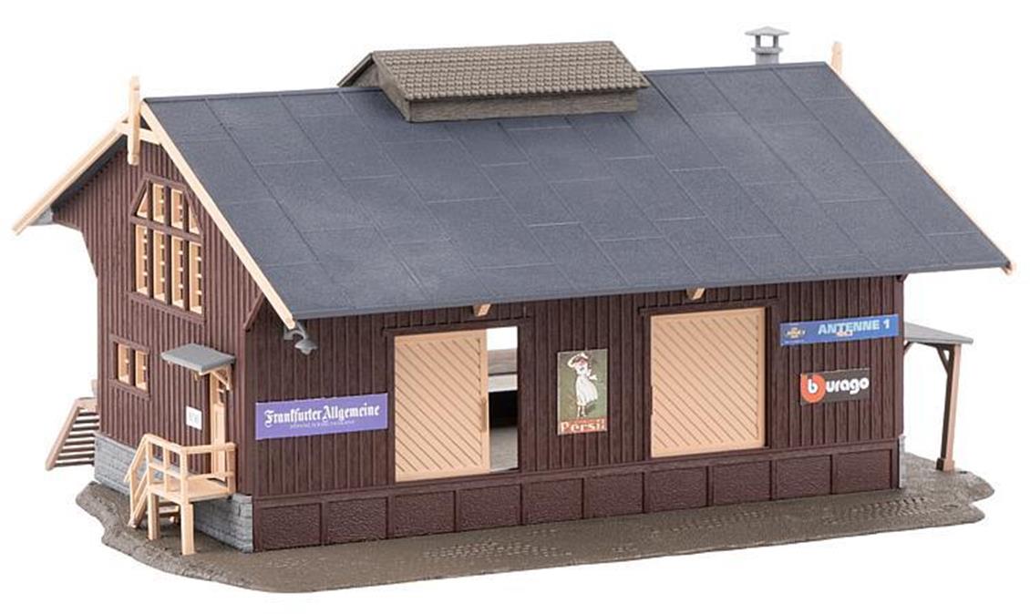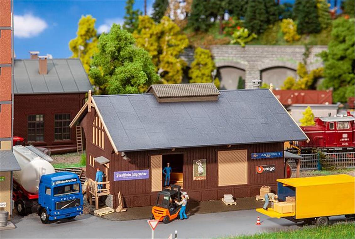 Die Ware verfügt über ein Satteldach, das die Arbeiten an einem Ziegelbasis und einer Ladungsrampe vor den Wetterbedingungen schützt. Vier große Schiebetüren und eine Treppe, die Lagerveranda.Das Zug Diorama ist wie das Erreichen des extremsten Punktes des Hobby. Sie benötigen verschiedene Häuser und Modelle, wenn Sie Ihre eigene Traumwelt schaffen. Je größer Ihre Traumwelt, desto schöner werden Sie tun. Wenn Sie die 1930er Jahre auf einer Skala von 1/87 erinnern möchten. Es wäre die richtige Entscheidung, ein Lagerporchmodell auszuwählen. Das feinste Detail wird zum Modell verarbeitet.