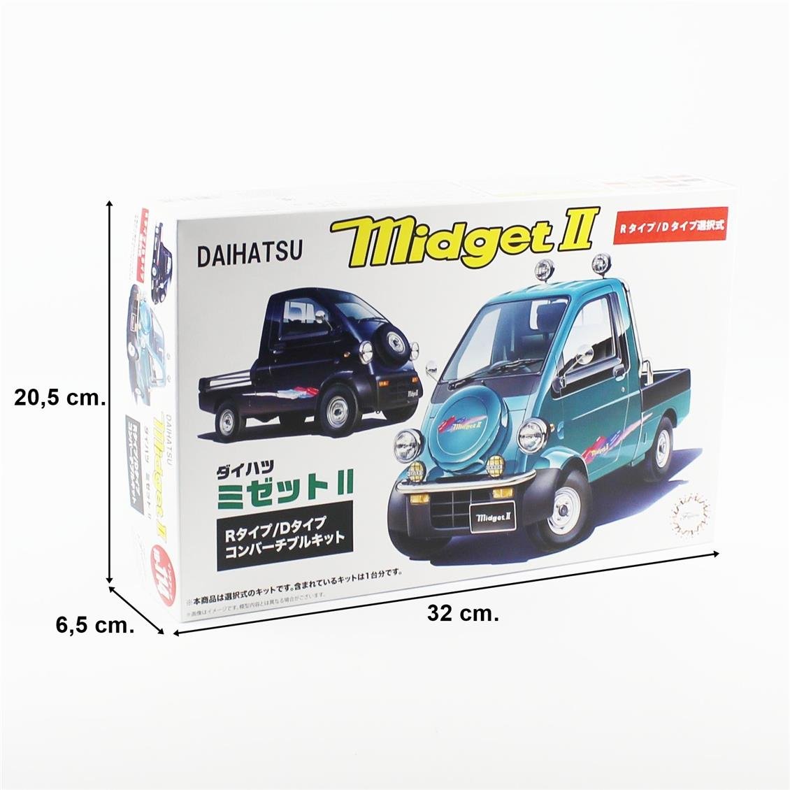 Es ist ein sehr erfreuliches Modellkit, das zwei verschiedene Versionen von Daihatsu Midget bietet, einem der bekanntesten und sympathischsten Mini -Kommerziellfahrzeuge Japans. Diese Einzeltransporte, die das unverzichtbare Transportwerkzeug kleiner Unternehmen, Handelsmänner und sogar das tägliche Leben in der japanischen Landschaft sind, markierten eine Zeit mit seinen einfachen, aber funktionalen Designs. Dieses Kit enthält Teile sowohl für Typ R- als auch für Typ -D -Versionen. Daher hat das Modell die Möglichkeit, den klassischen Look einfacher Typ R oder Typ D mit einem modernisierten Scheinwerfer- und Pufferdesign zu gestalten. In beiden Versionen ist die für die Details gegebene Sorgfalt ziemlich bemerkenswert. Empfehlungen