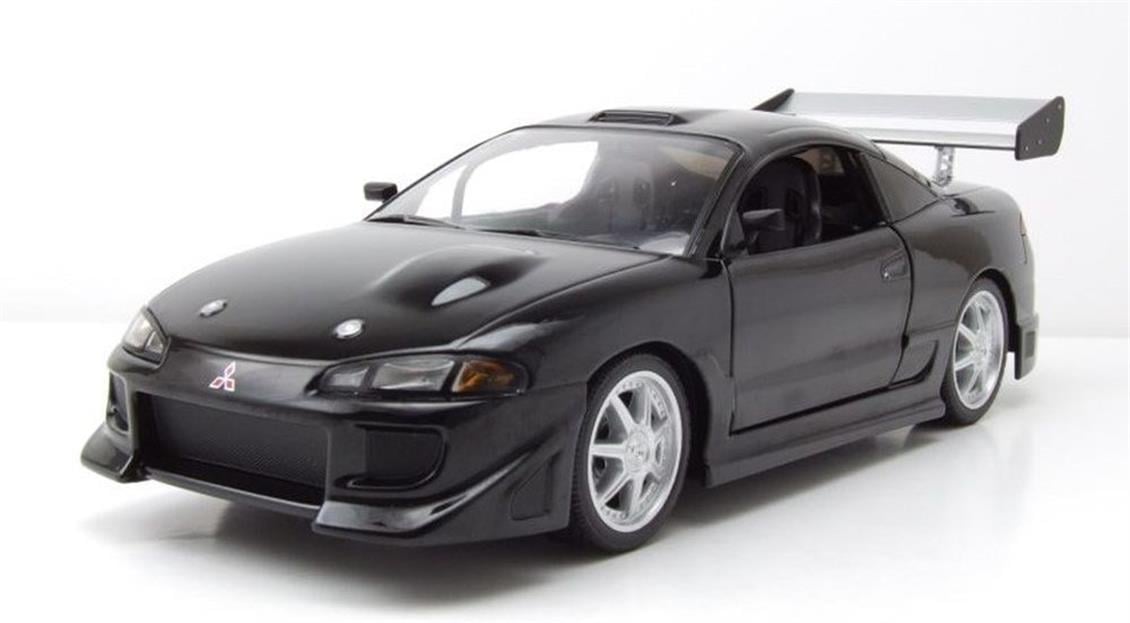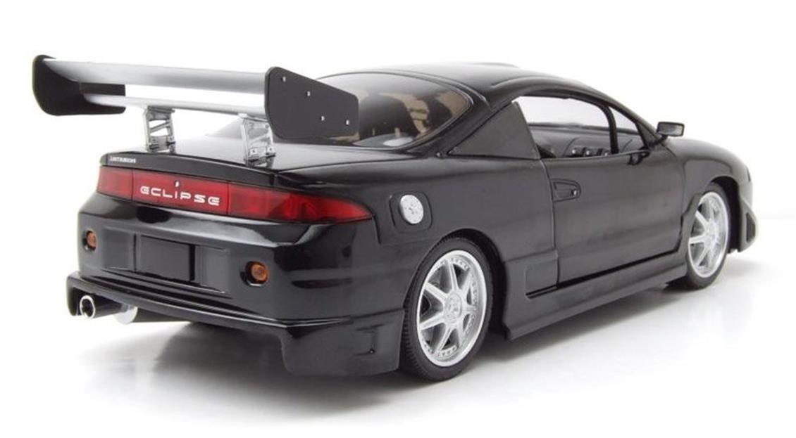 Mitsubishi Eclipse von Greenlight ist ein Modell 1/18 des schwarzen Autos.