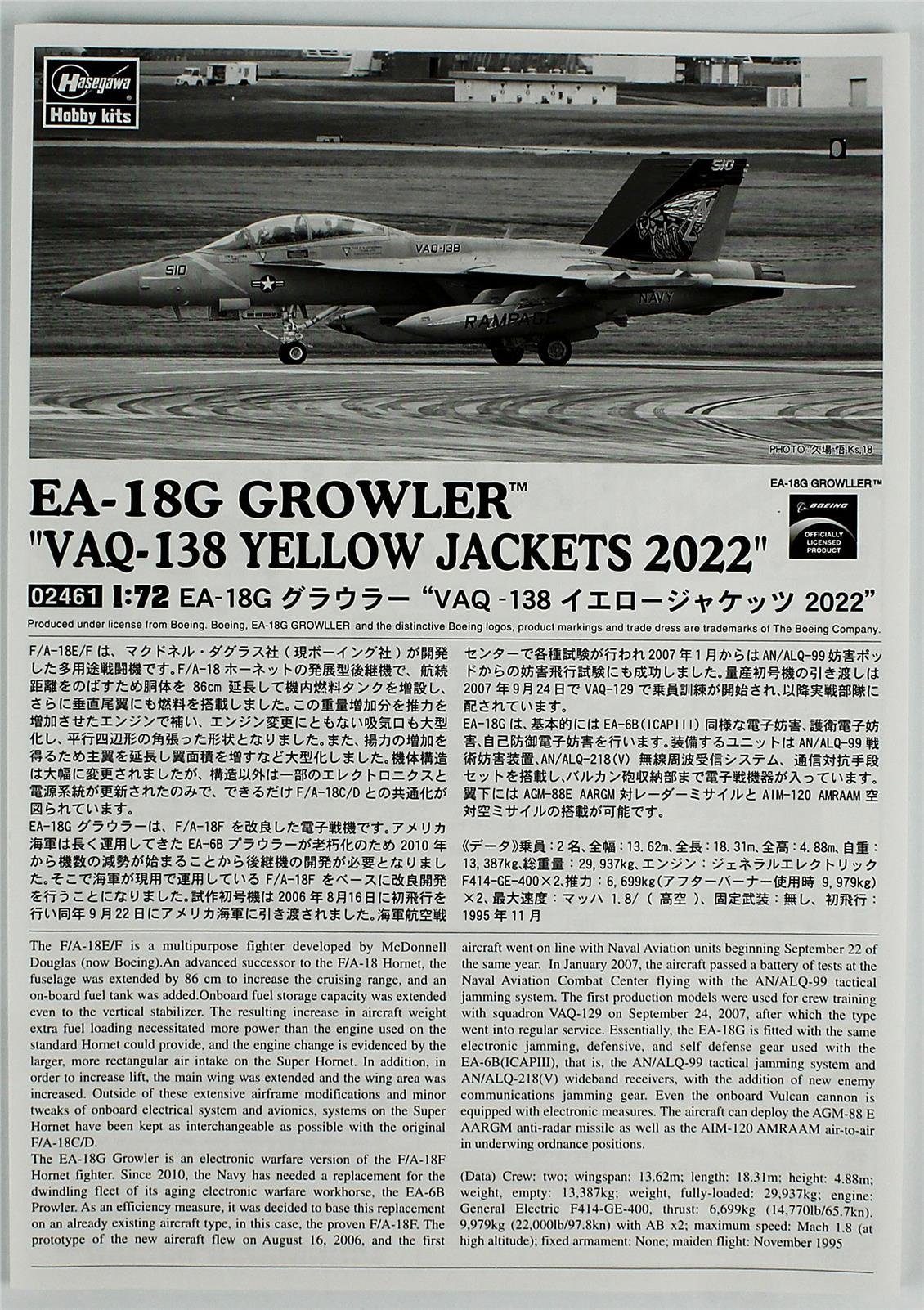 Boeing EA-18G Growler ist ein modernes amerikanisches elektronisches Kampfflugzeug. Der Prototype -Flug fand 2006 statt. Drei Jahre später wurde die Maschine in der US -Marine in Betrieb genommen und ist noch im Inneren. Insgesamt wurden ungefähr 100 Einheiten aus diesem Flugzeug hergestellt. Die Provokation erfolgt von zwei Turbofan-Motoren General Electric F414-GE-400. Die maximale Geschwindigkeit des Flugzeugs beträgt 1,8 mA und der maximale Bereich beträgt 3.300 Kilometer. Der Einheitspreis des Flugzeugs beträgt 68,2 Mio. USD. Der Boeing EA-18G Growler wurde geschaffen, um den EA-6B-Prowler in der US-Marine zu ersetzen. Die F / A-18 F Super Hornet-Maschine wurde auf der Grundlage der Hornissen entwickelt und teilt 90 %seiner Komponenten mit. Es wurde jedoch für völlig unterschiedliche Zwecke und Aufgaben erstellt - dh alle Erkennungsinstrumente des Feindes (hauptsächlich Radare) stören und zerstören und so die Erfolgschancen der US Navy -Kampfaufgaben erhöhen. Boeing EA-18G Growlers Hauptwaffen, moderne ALQ-90-Kompressionsbehälter sowie Anti-Radar-Raketen (AGM-88) und eine Selbstverteidigungsrakete (AIM-120). Derzeit ist der Hauptbenutzer von EA-18G die US-Marine. Bisher war der einzige ausländische Käufer Australien.