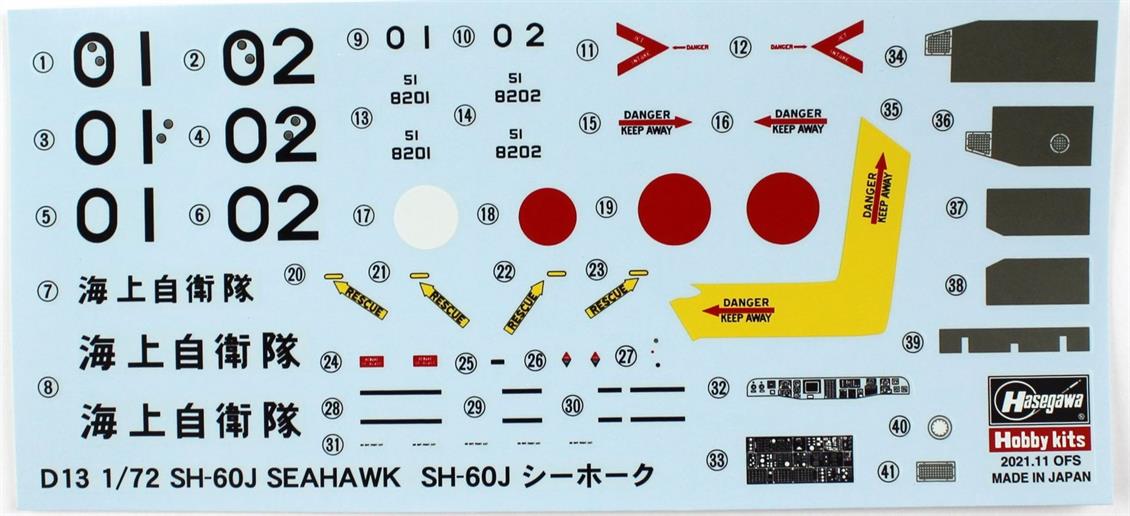Hasegawa D13 01443 1/72 Skala SH-60J Seahawk Helicopter Plastic Model Kit