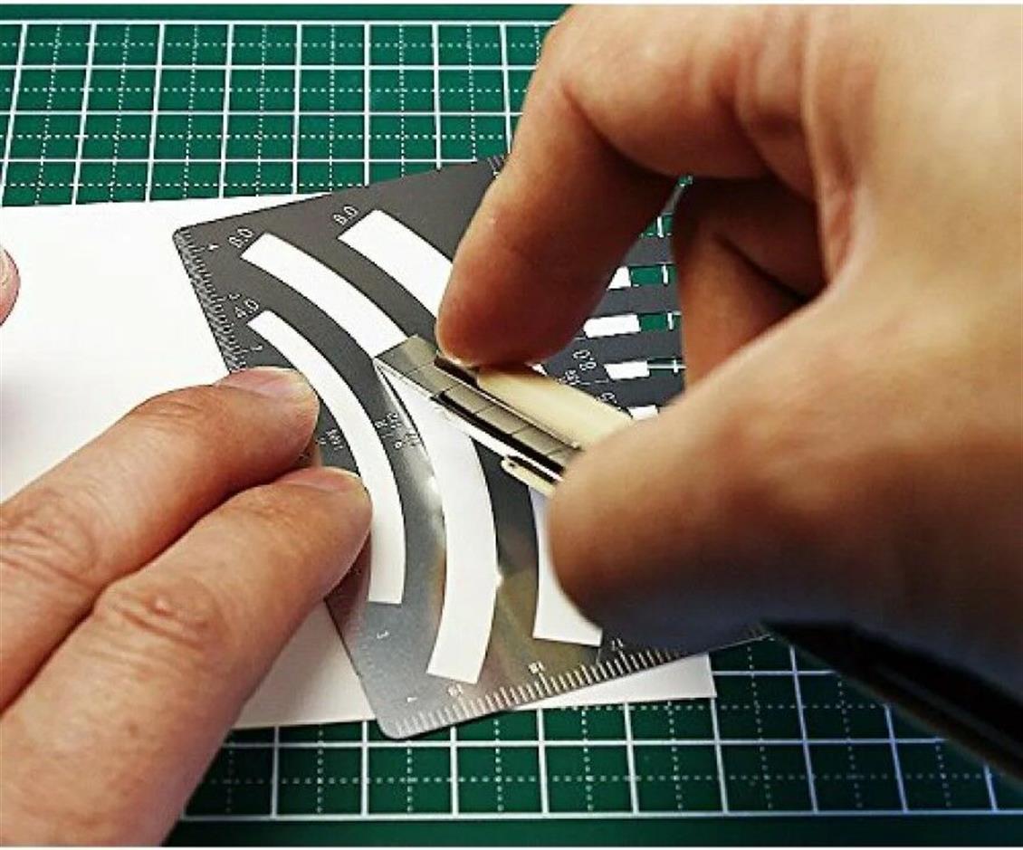 Die Schneidvorlage besteht aus hoher Härte aus Edelstahl. Die Dicke und Härte des Herrschers, auf das das Messer angewendet wird, wird für den langfristigen Gebrauch als langlebig erzeugt. Es wird in vielerlei Hinsicht verwendet, wie z. B. Parallelbreiten an Modellen, Schneidebahn- und Richtungsschilder, beschreibende Gürtel für Kampfflugzeuge und spezielle Markierungen für moderne Flugzeuge, die Rennstreifen für Automodelle und motorische Modelle markieren. Das Detailniveau der Modelle ist eines der qualitativ hochwertigen und langwierigen Handwerkzeuge von Hasegawa -Firmen, mit denen Sie eine kleine Anzahl von entsprechend erzeugten Details öffnen können, die Sie in den Tankkörpern verwenden können, wenn er den Modellisten nicht zufriedenstellt oder wenn Sie ein handgefertigtes Stück erstellen.
