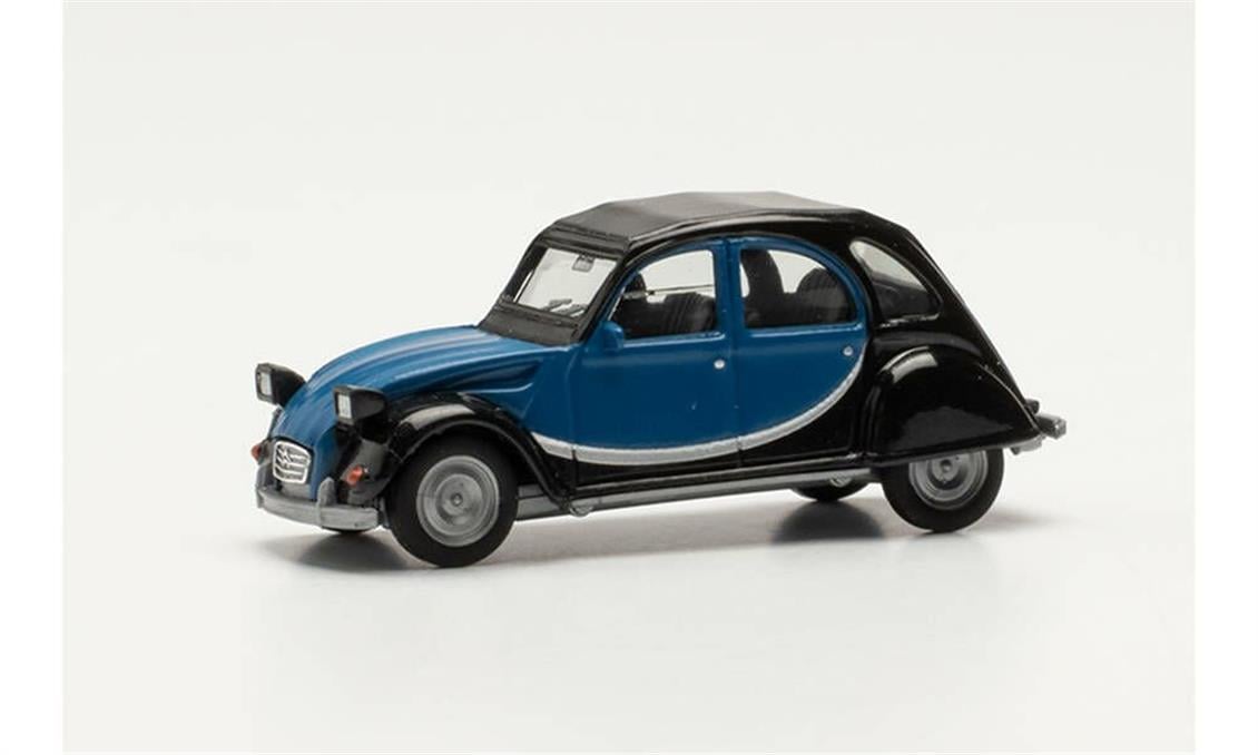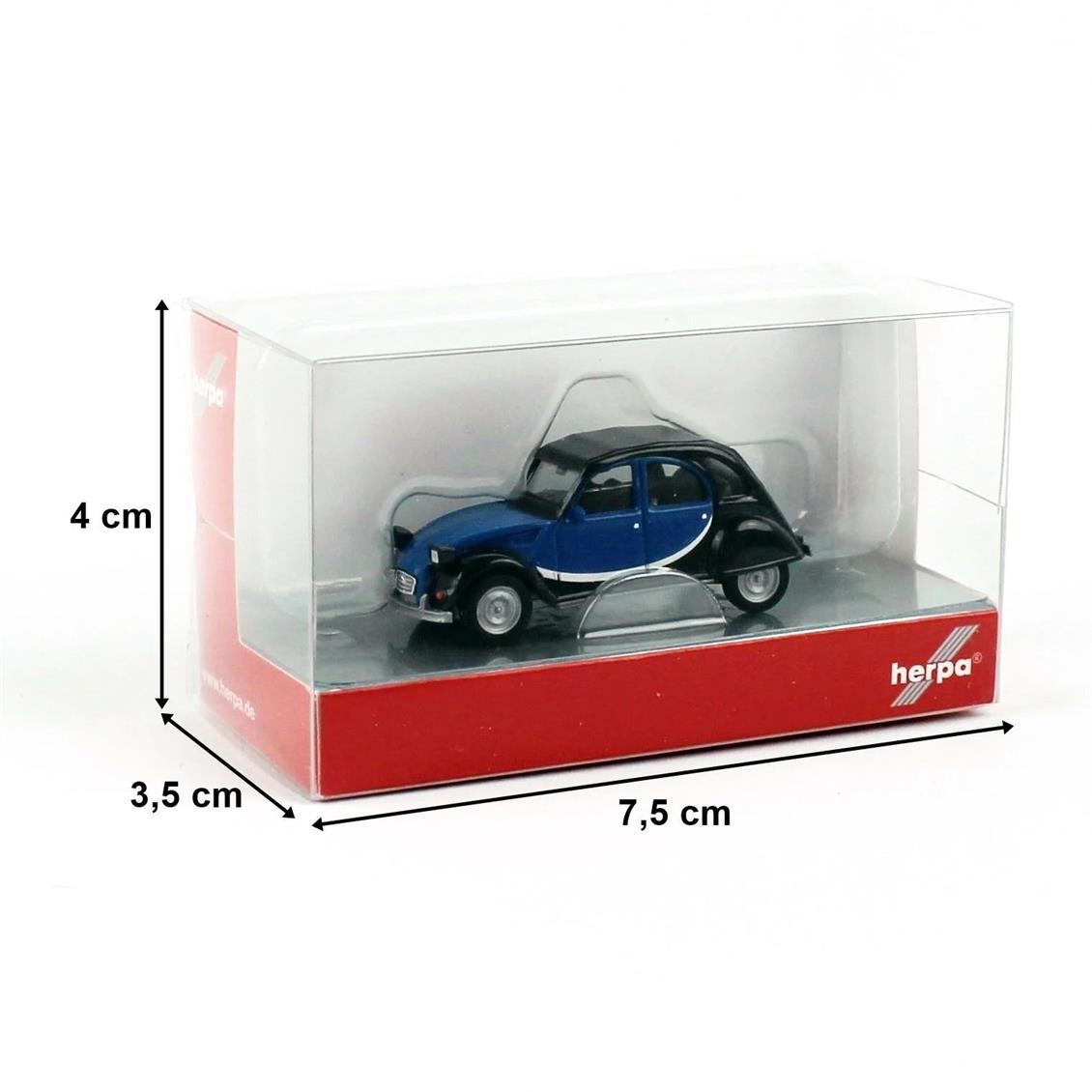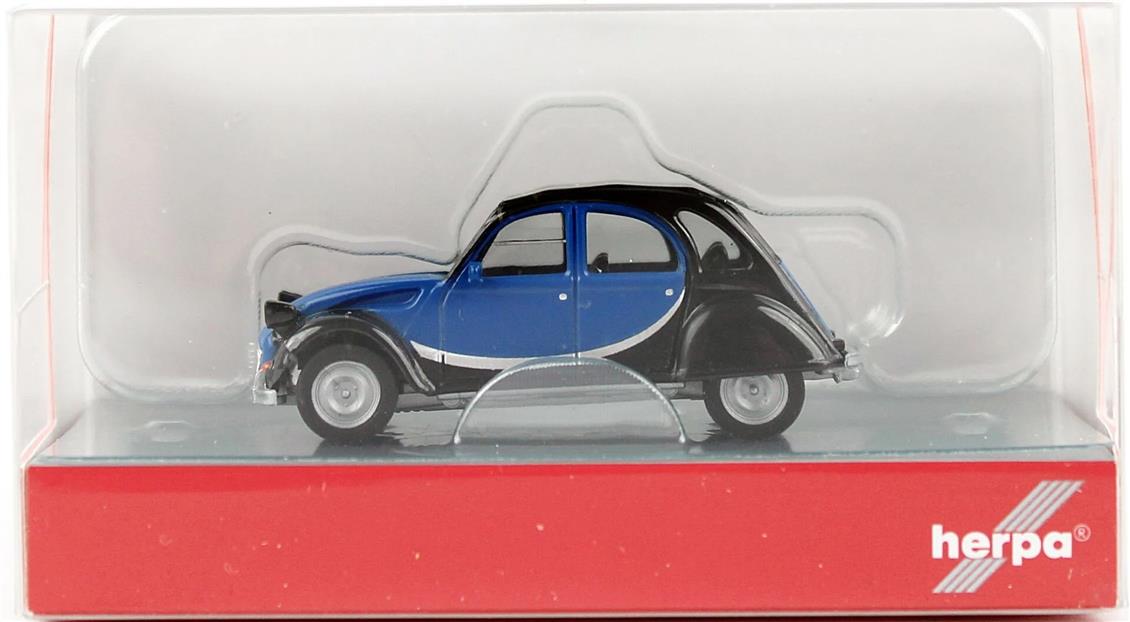 Herpa 020817-006 1/87 Skala Citroen 2 CV Charleston, Blau/Schwarz, bereit für das Ausstellungsmodellfahrzeug