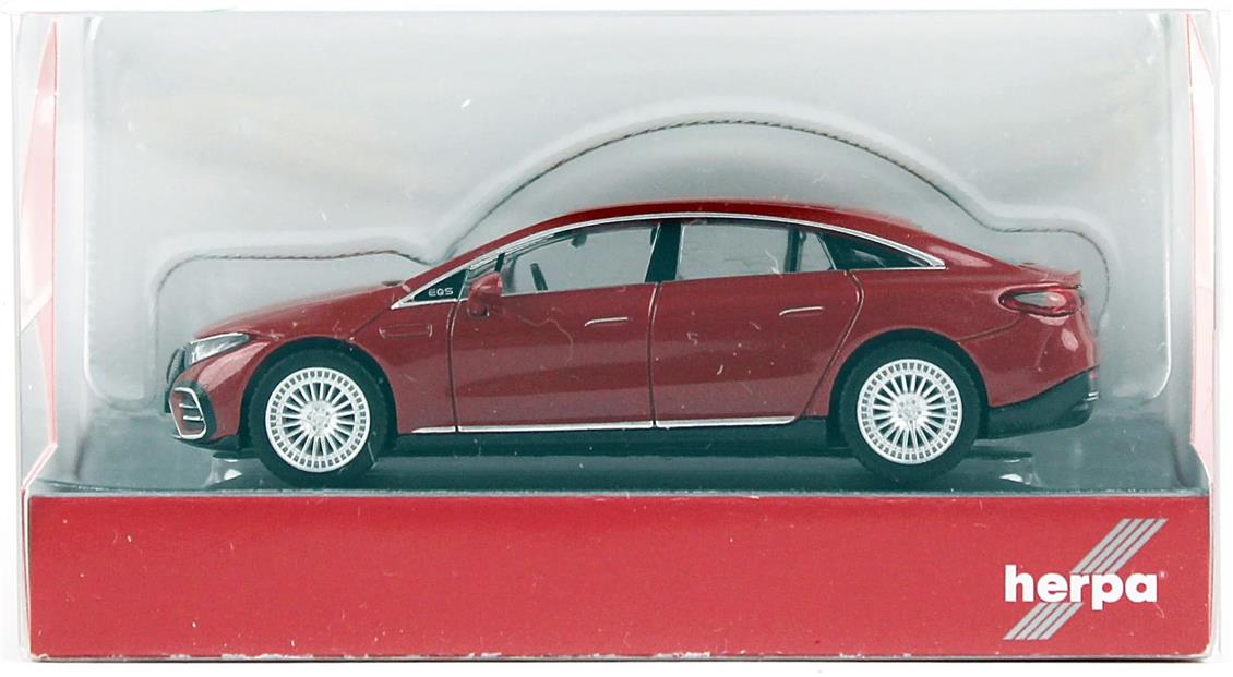 Herpa 430944 1/87 Mercedes EQ -EQs, Rot, Modellfahrzeug, die ausgestellt werden können