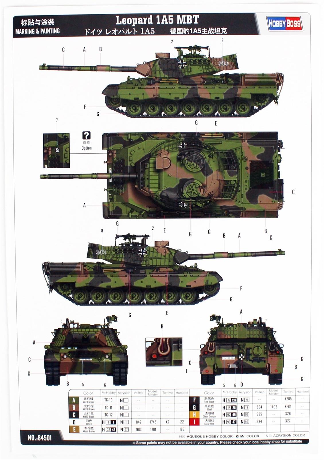 HobbyBoss 84501 1/35 Leopard 1A5 MBT Tank Dismop Plastikmodell