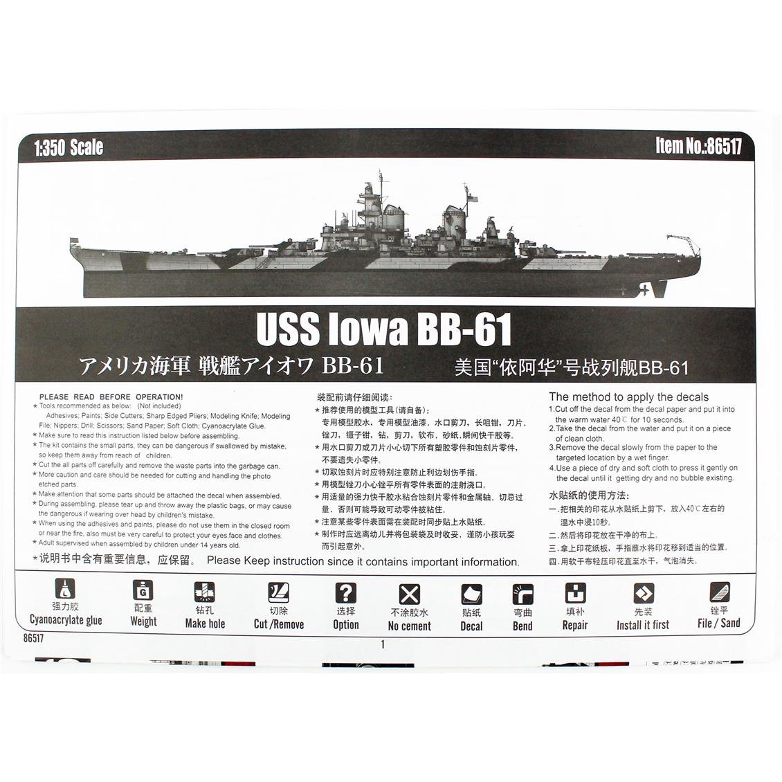 HobbyBoss 86517 1/350 Skala, USS Iowa BB-61 Kriegsschiff, Kunststoffmodell-Kiti