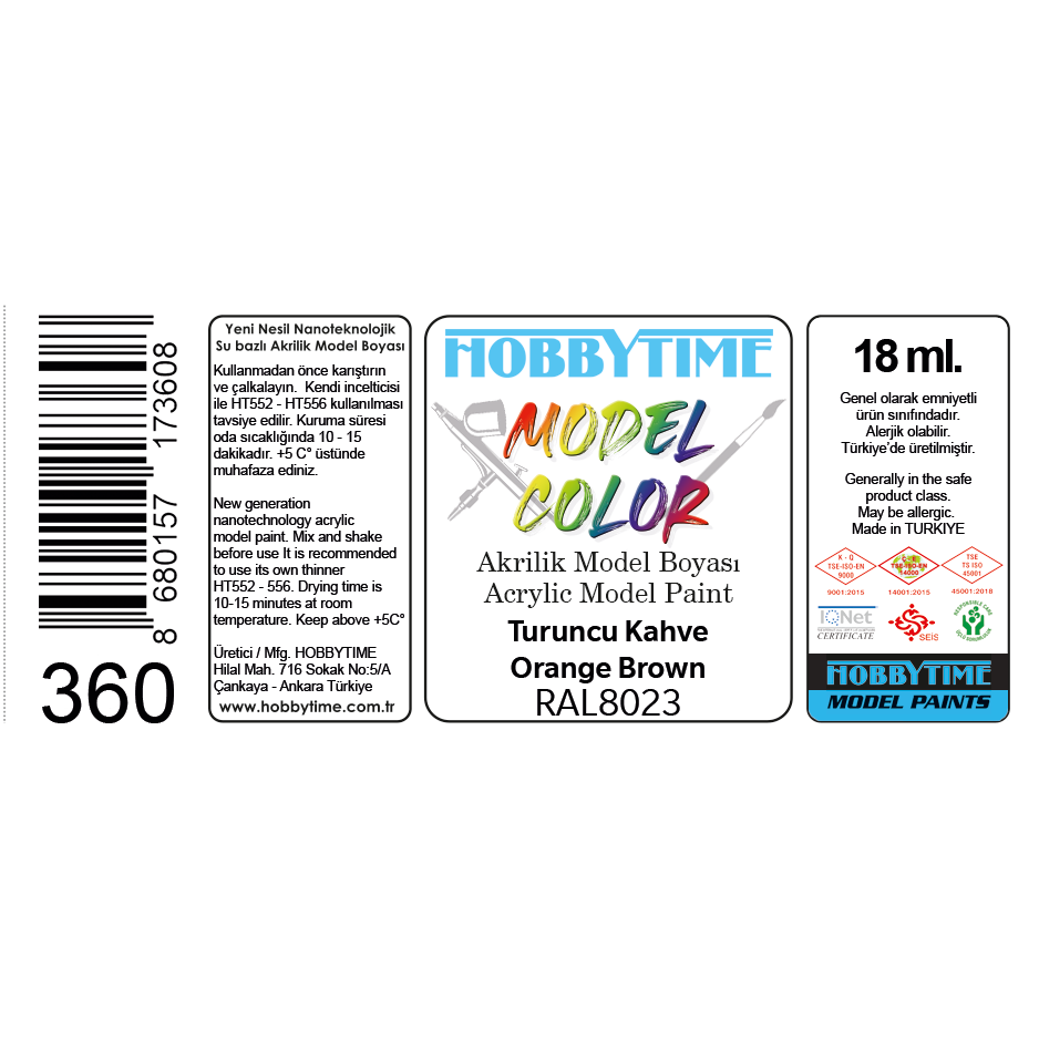 Hobbytime 360 ​​18 ml. Ral8023 Orangenkaffee (orangebraun), Acrylmodellmalerei (HT360)