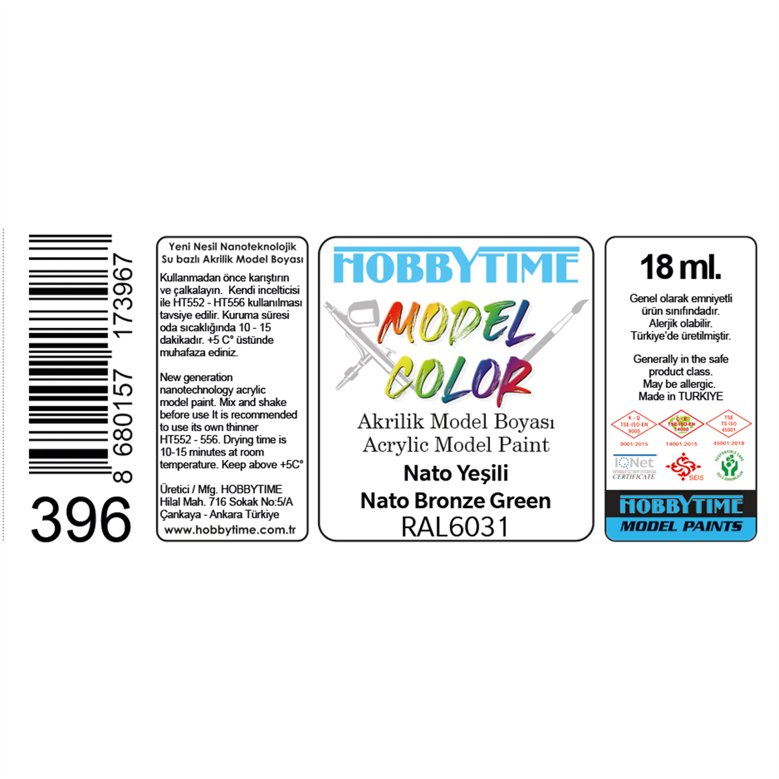 Hobbytime 396 18 ml. RAL6031, NATO Green (NATO -Bronzegrün), Acrylmodellmalerei