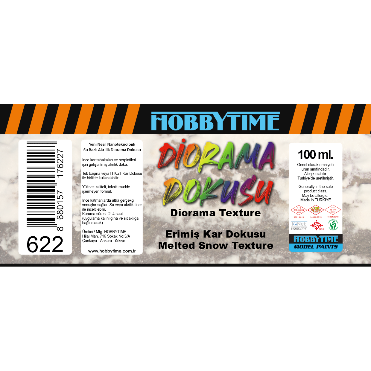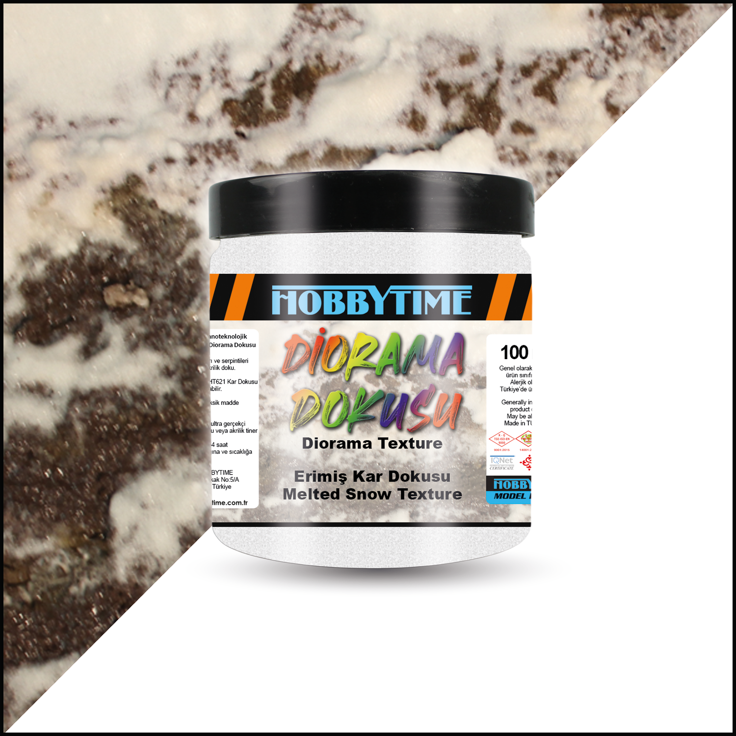 Hobbytime 622 ist ein spezielles Wasser auf Wasserbasis, das entwickelt wurde, um realistische geschmolzene Schneeeffekte in Ihrer geschmolzenen Schneextur, Diorama, Modell- und Modellszenen zu erzeugen. Mit seinem leicht hellen und feuchten Aussehen reflektiert der Bauch direkt die Momente, in denen es zu schmelzen beginnt. Es kann direkt mit einer Bürste oder einem Spatel aufgetragen werden und hinterlässt nach dem Trocknen eine transparente, feuchte Oberfläche. Besonders in Winterszenen; Es ist ideal, um beeindruckende Bilder in Bereichen wie Straßenrand, unter dem Dach und Kanalkanten zu schaffen.