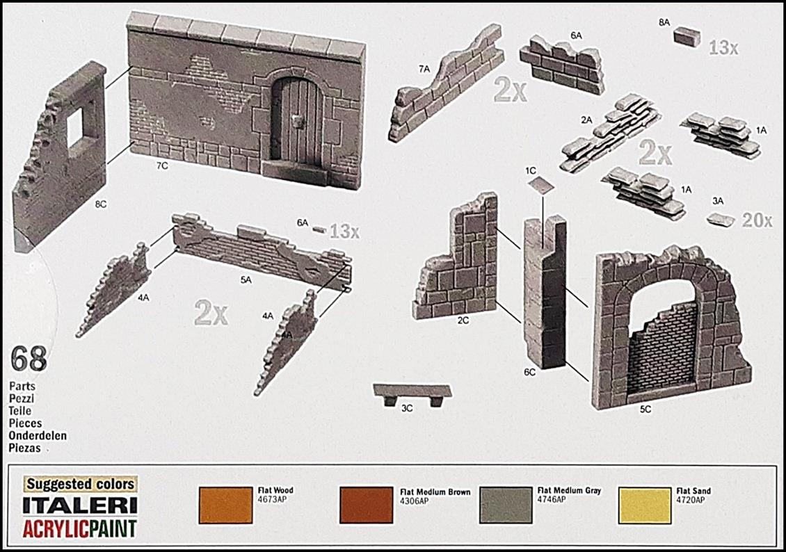ITALI 6090S 1/72 Ruinen von Wänden und Wänden zerlegtes Plastikmodell