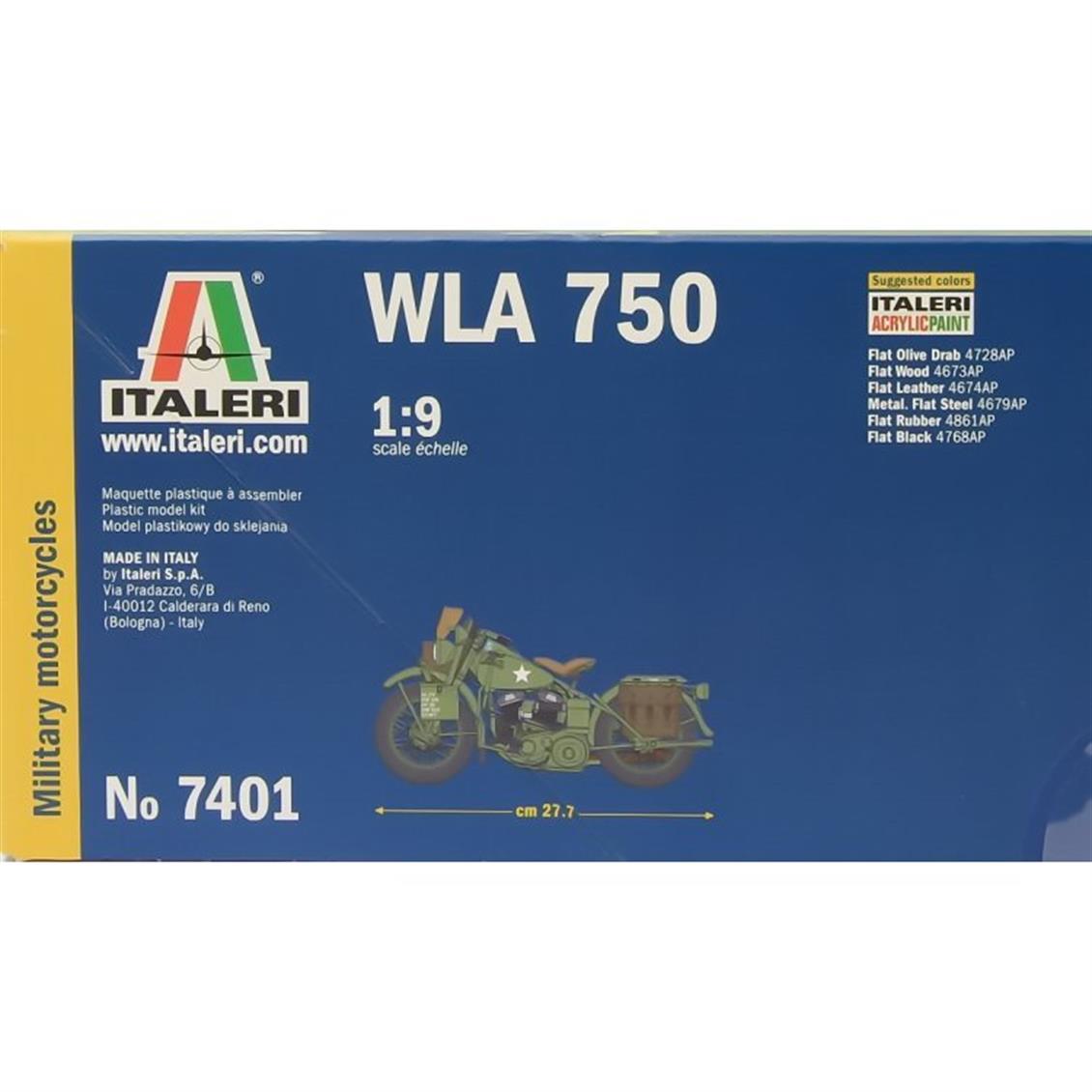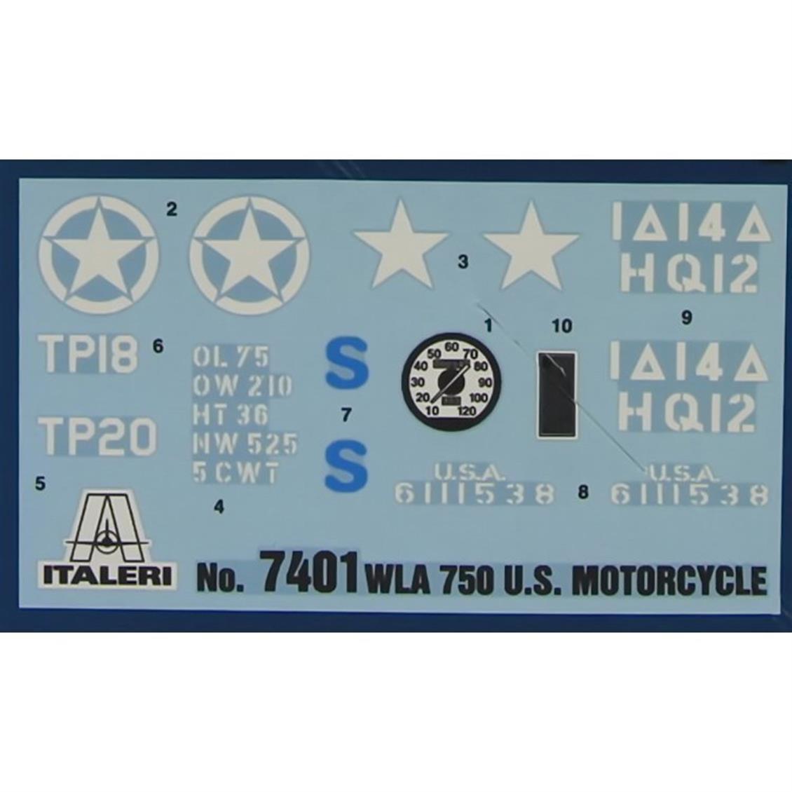 Italeri 7401S 1/9 Skala, US -Armee WWII WLA750 Military Motorcycle, Plastikmodell Kit (I7401)