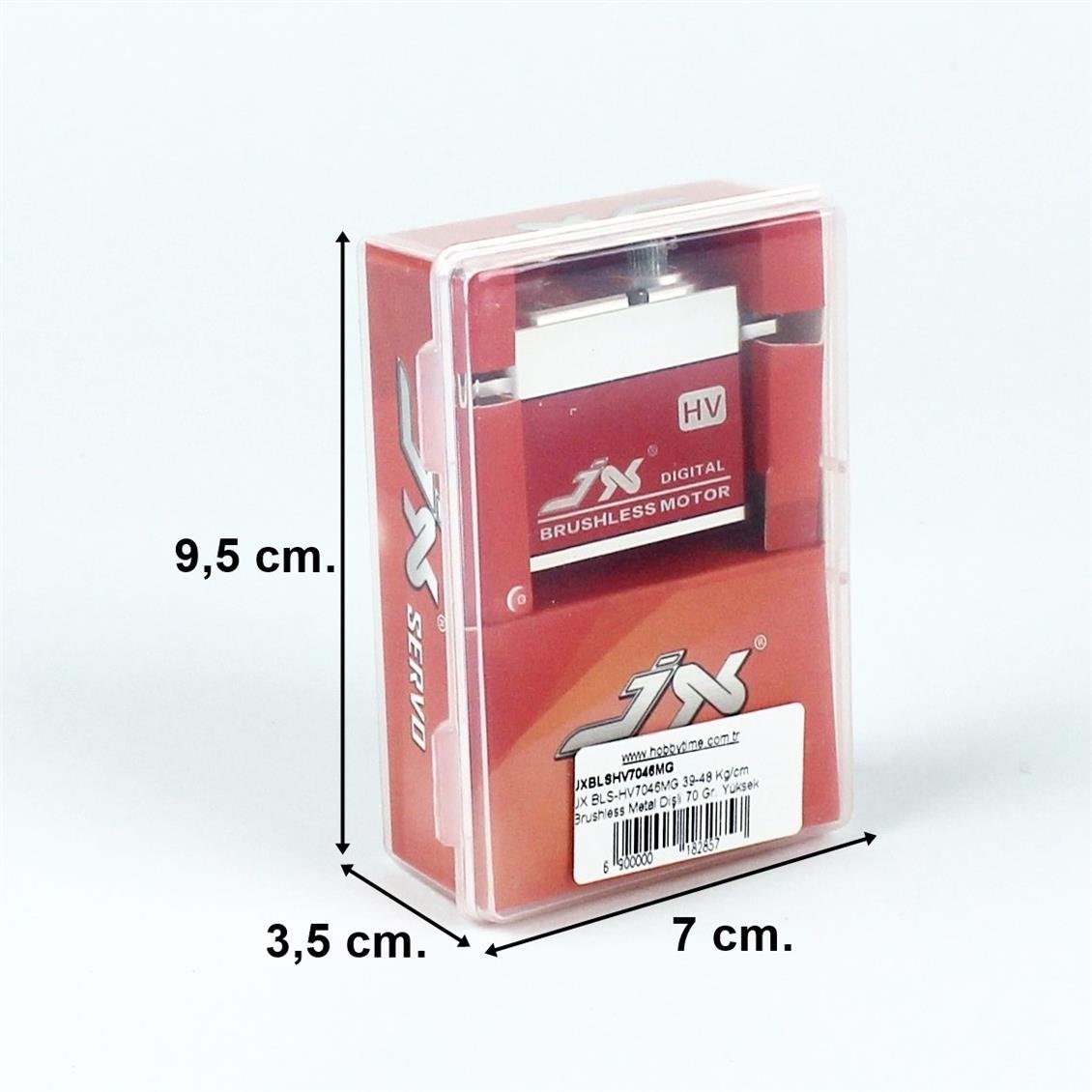 JX BLS-HV7046MG 39-48 kg/cm bürstenloser Metallgetriebe 70 gr. Das digitale Servo mit hoher Spannung ist ein hochtorques Servo, das für große RC -Fahrzeuge, Roboterprojekte und industrielle Anwendungen ausgelegt ist, was mit seiner starken Leistung und Haltbarkeit auffällt. Dieser Servo bietet dank der bürstenlosen Motor -Technologie einen langen Einsatz, während eine Hochspannungskompatibilität (HV) und Spannung bis zu 8,4 V in Systemen, die Spannung bieten, eine maximale Leistung bieten. Der massive Metallgetriebe mechanismus garantiert auch unter hoher Belastung einen zuverlässigen Betrieb. Der 39-48 kg/cm Drehmomentbereich macht diesen Servo ideal für schwere Bedingungen.