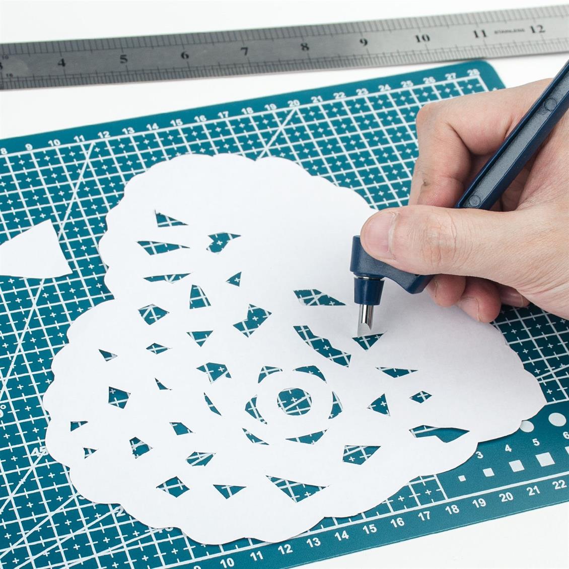 Es hat ein 360 -Grad -Rotary -Messer, mit dem Sie sehr komplexe Formen einfach und schnell schneiden können. Das Messer wird die menschliche Haut im normalen Gebrauch nicht leicht reduzieren und ist daher sehr geeignet für die Verwendung in Schulen für junge Handwerks- und Hobby -Enthusiasten. Paper-Cesme, Decoupage, Vorlagenherstellung, Planer-Aufkleber, Kunst, Grafikdesign, Architektur, Scrapbooking, Vinyl verwendet Schreibzeichen und viele andere. Sie können komplexe Formen aus Vinylbeschichtungsmaterialien schneiden, um Ihre eigenen Aufkleber und Runden zu erstellen.