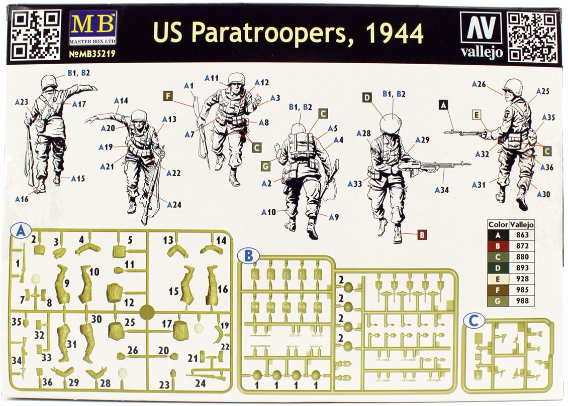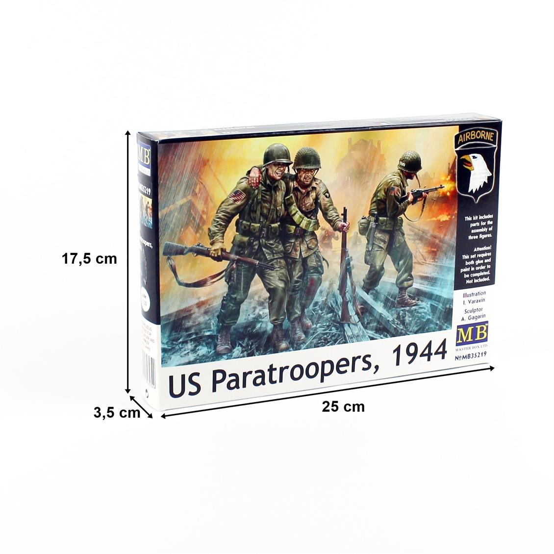 Masterbox 35219 1/35 Skala, WW II -Serie, Amerikaner Fallschirmspringer, Kunststoff -Figuren -Kit