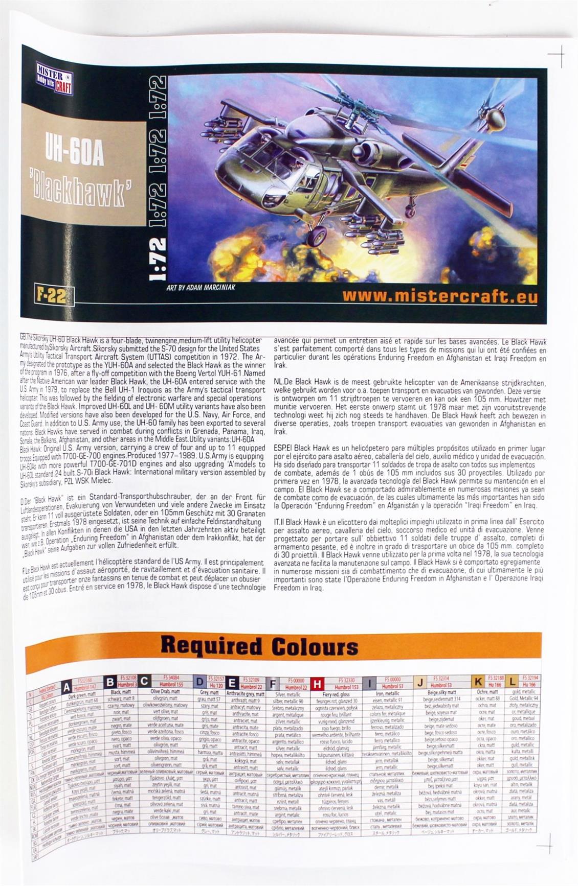 Mistercraft F022 1/72 UH-60 Ein Black Hawk Military Helicopter Disassembled Plastic Model
