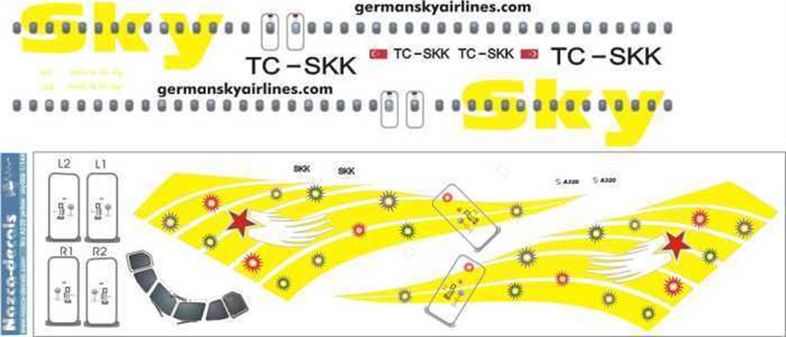 1/144Skala,Airbus A320Gelb für Ihre Plastikmodelle,Himmel, Aufkleber -Set. Mit hohem Auflösungsdruck auf hochwertigem Aufkleberpapier wird Ihr Modell seinen Platz in Ihrem Schaufenster einnehmen, indem Sie alle Details haben.