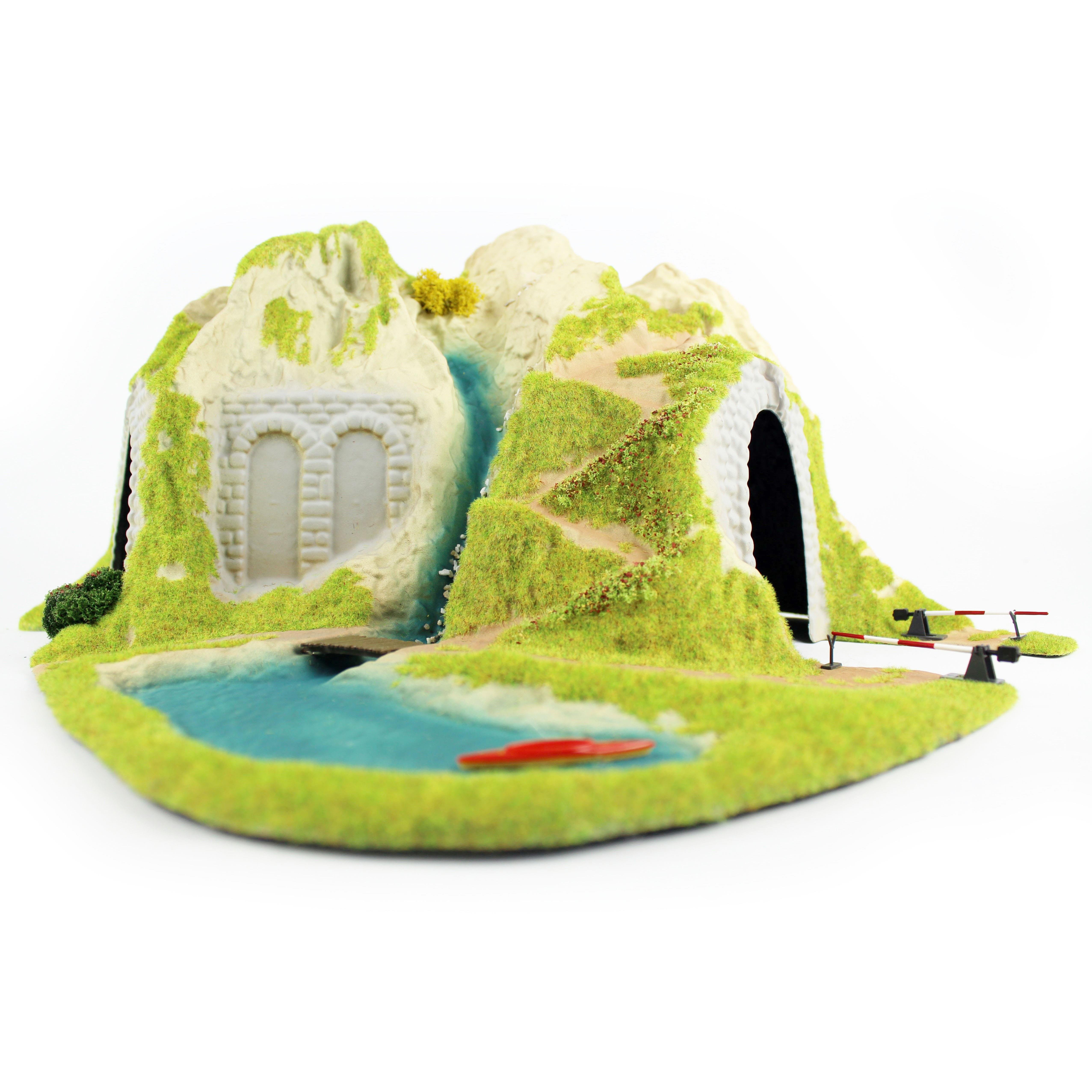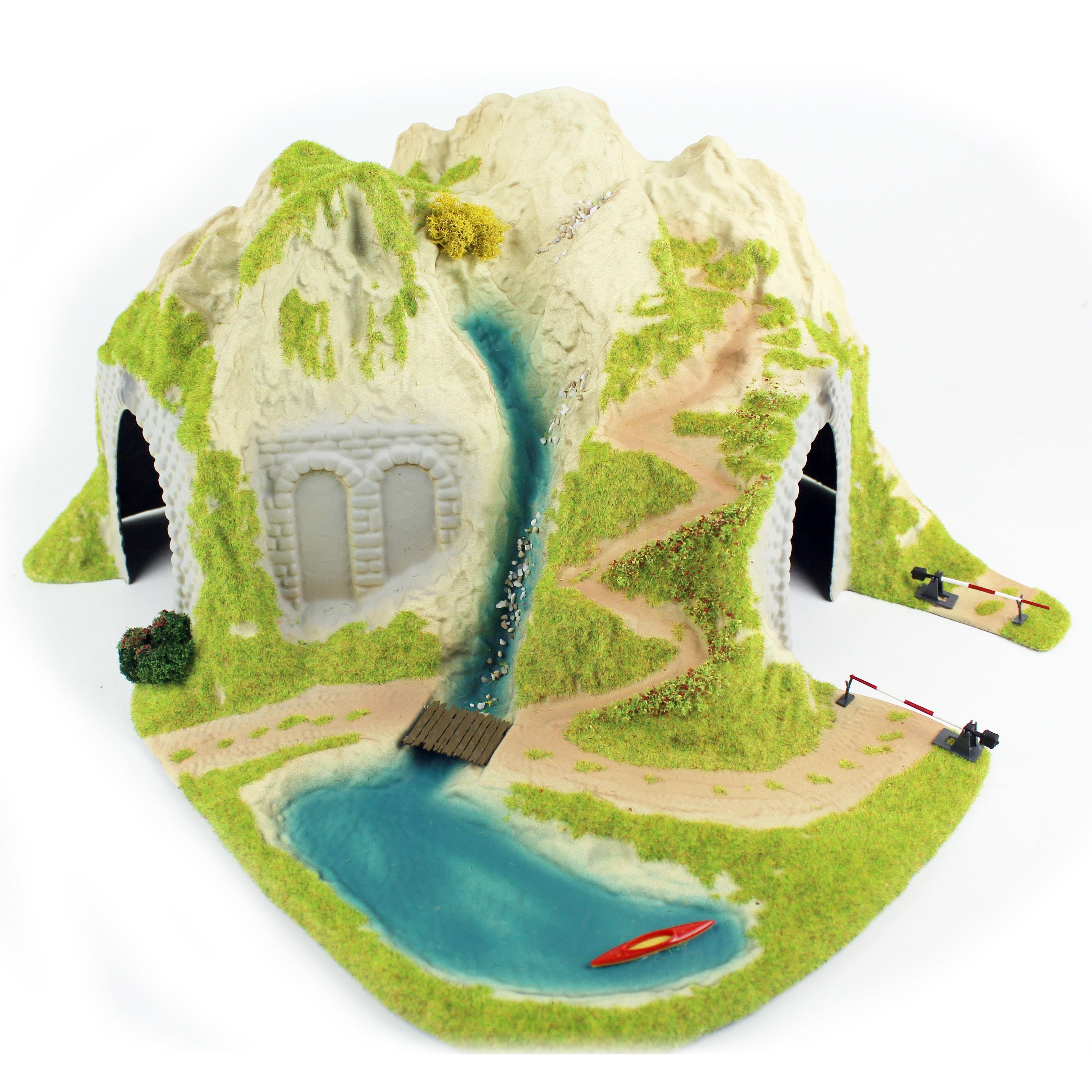 Gehst du aus den Formen? Wenn Sie Ihrer Eisenbahnlinie eine einfache Vielfalt verleihen möchten, sind Tunnel die beste Lösung. Sowohl Kinder als auch Erwachsene genießen das Verschwinden des Zuges auf einer Seite des Tunnels und beobachten das Wiederaufnehmen auf der anderen Seite! Der Zug fährt durch tiefe Täler, häufige Berge oder offene Länder. Noch "Corner Tunnel" ist ideal, um noch realistischeren Details zu allen Arten von Zugansichten hinzuzufügen. Zusätzlich zur antiken aussehenden Arcade -Wand verfügt dieses Produkt über einen kleinen, pastoralen schwimmenden See mit einem roten Kanu und einer kleinen Holzbrücke.
