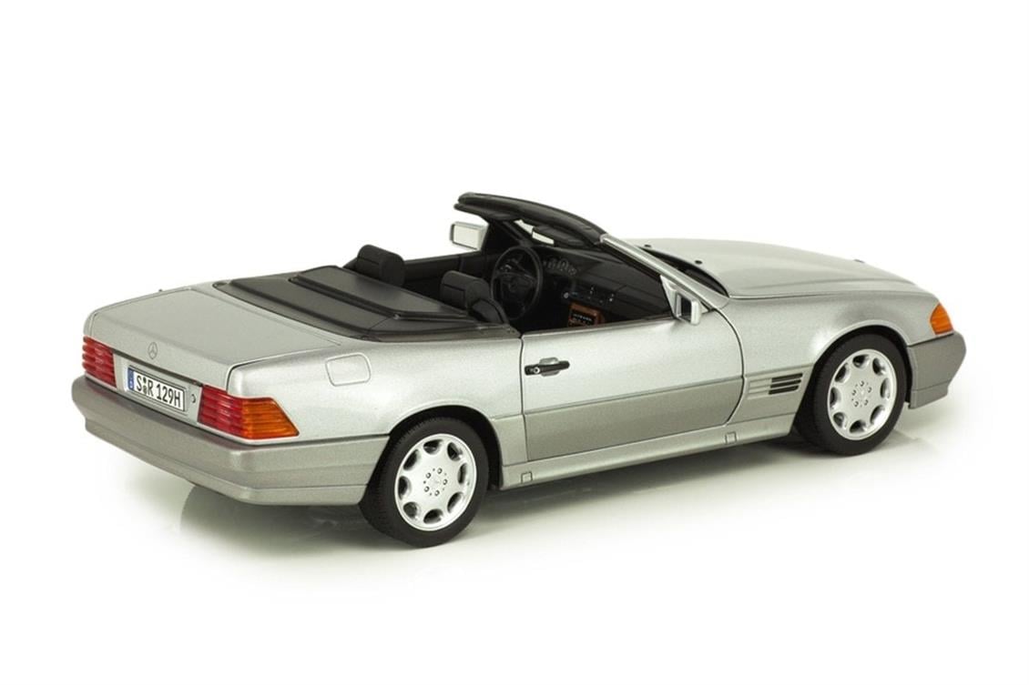 Norev B66040656 1/18 Mercedes Benz 500 SL (R129) Roadster 1989, leuchtend Silbermetallic, bereit, Metallwagenmodell auszustellen